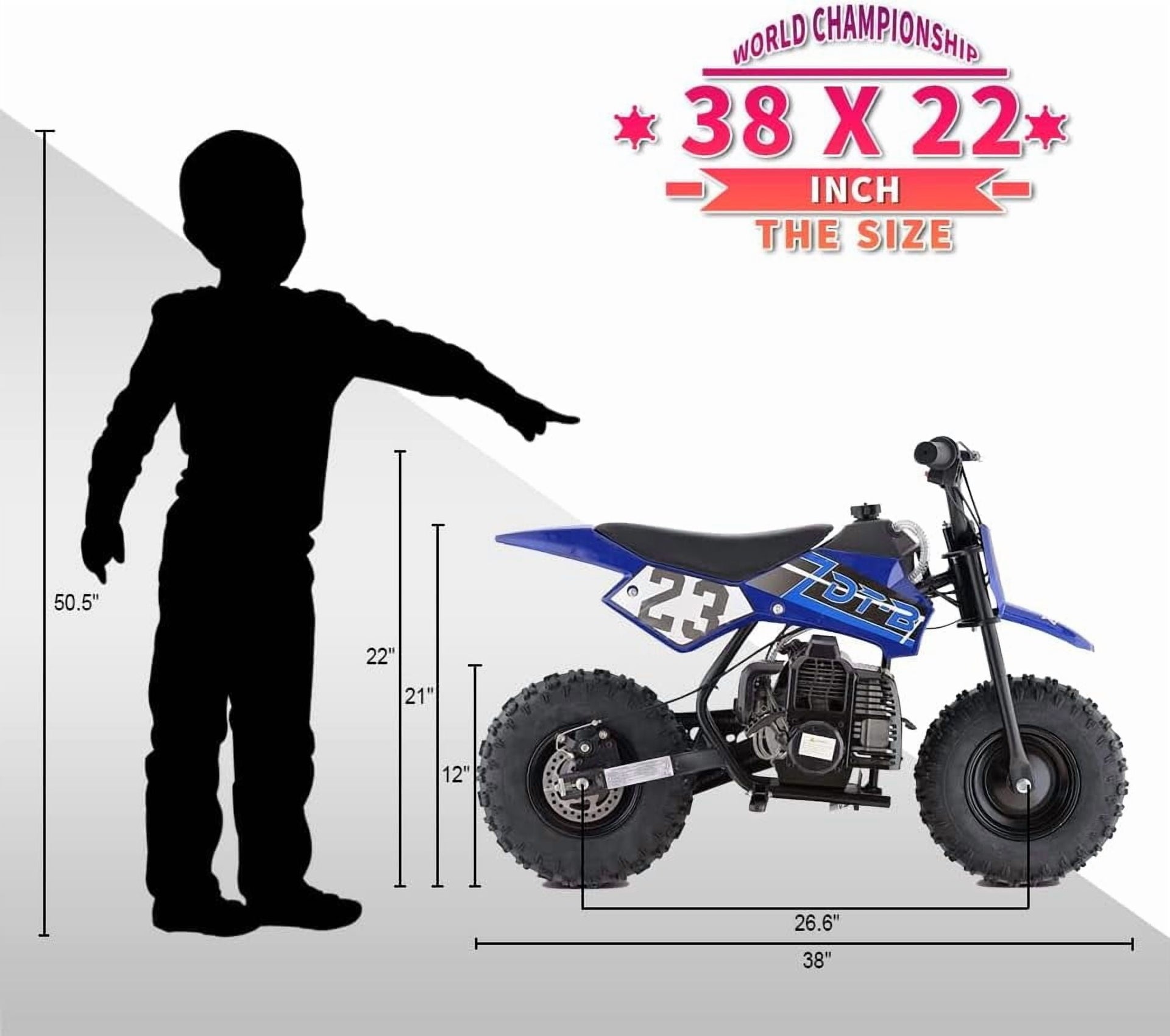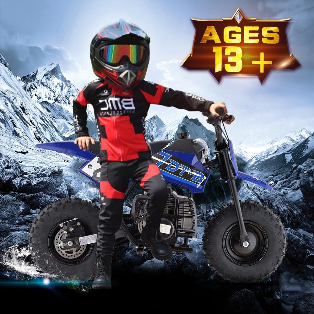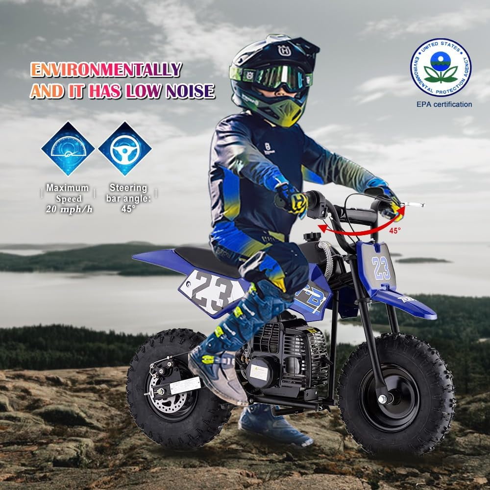 Aoemoe Mini Kid Dirt Bike, 49 CC 2-Stroke Gas Bike with Off-Rode Tire, Suspensions, Disc Brakes, Max Load 160Lbs, Up to 20Mph, EPA Approved