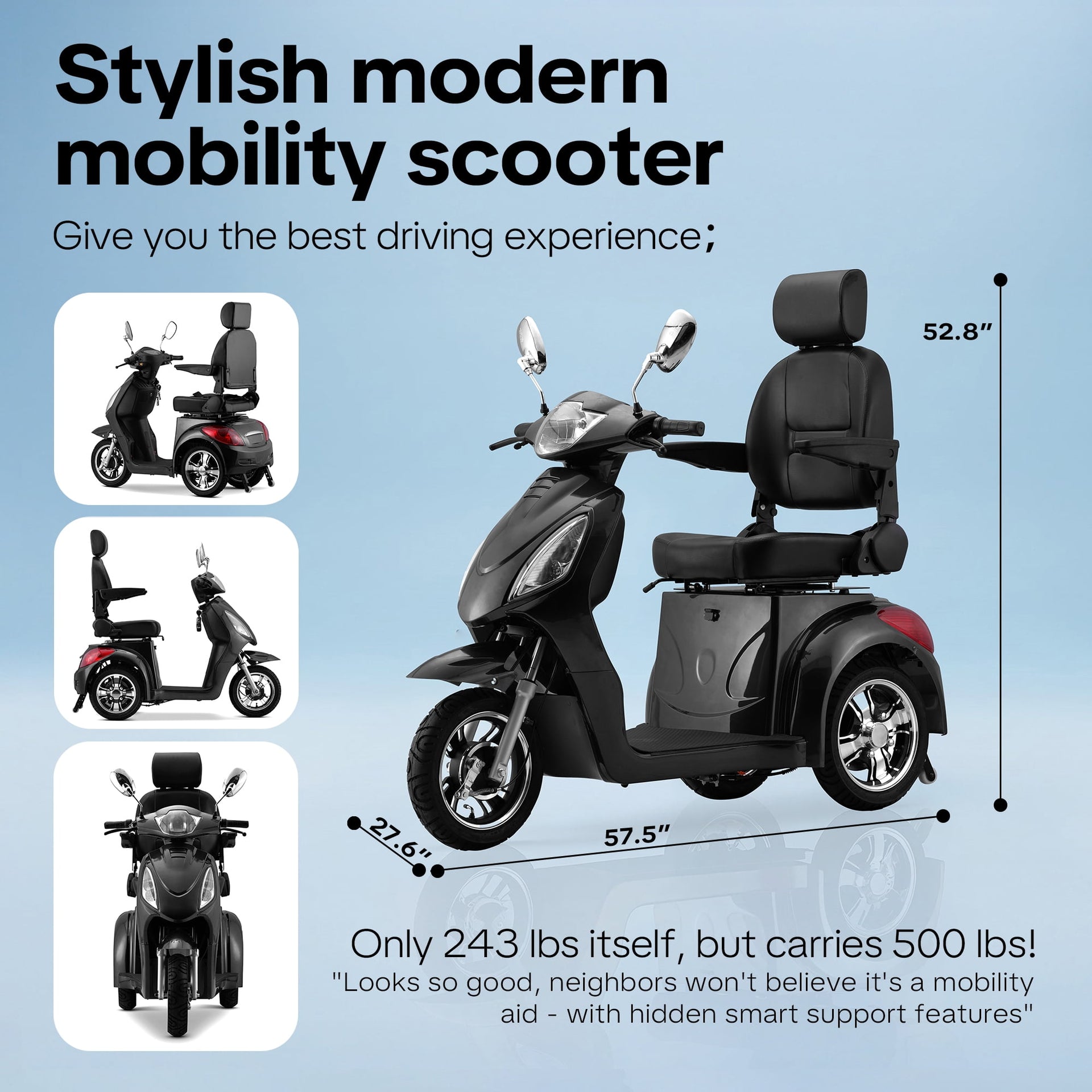 🎁【500-lb Capacity : Your All-in-One Daily Driver】Engineered to carry you and your gear with ease, this robust mobility scooter supports up to 500 pounds. Equipped with lights, turn signals, a horn, and dual storage, it’s a blends safety with everyday utility—much like a reliable Electric Powered Wheelchair.