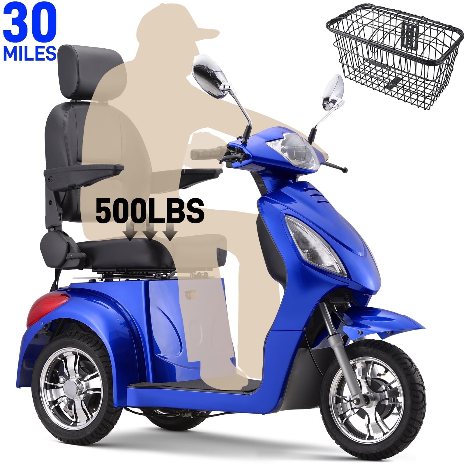 【SAFETY FIRST】As a reliable handicap scooter,it includes a safety belt,anti-tip rollers,front shock absorbers,and 4.5" ground high for stability on uneven terrain