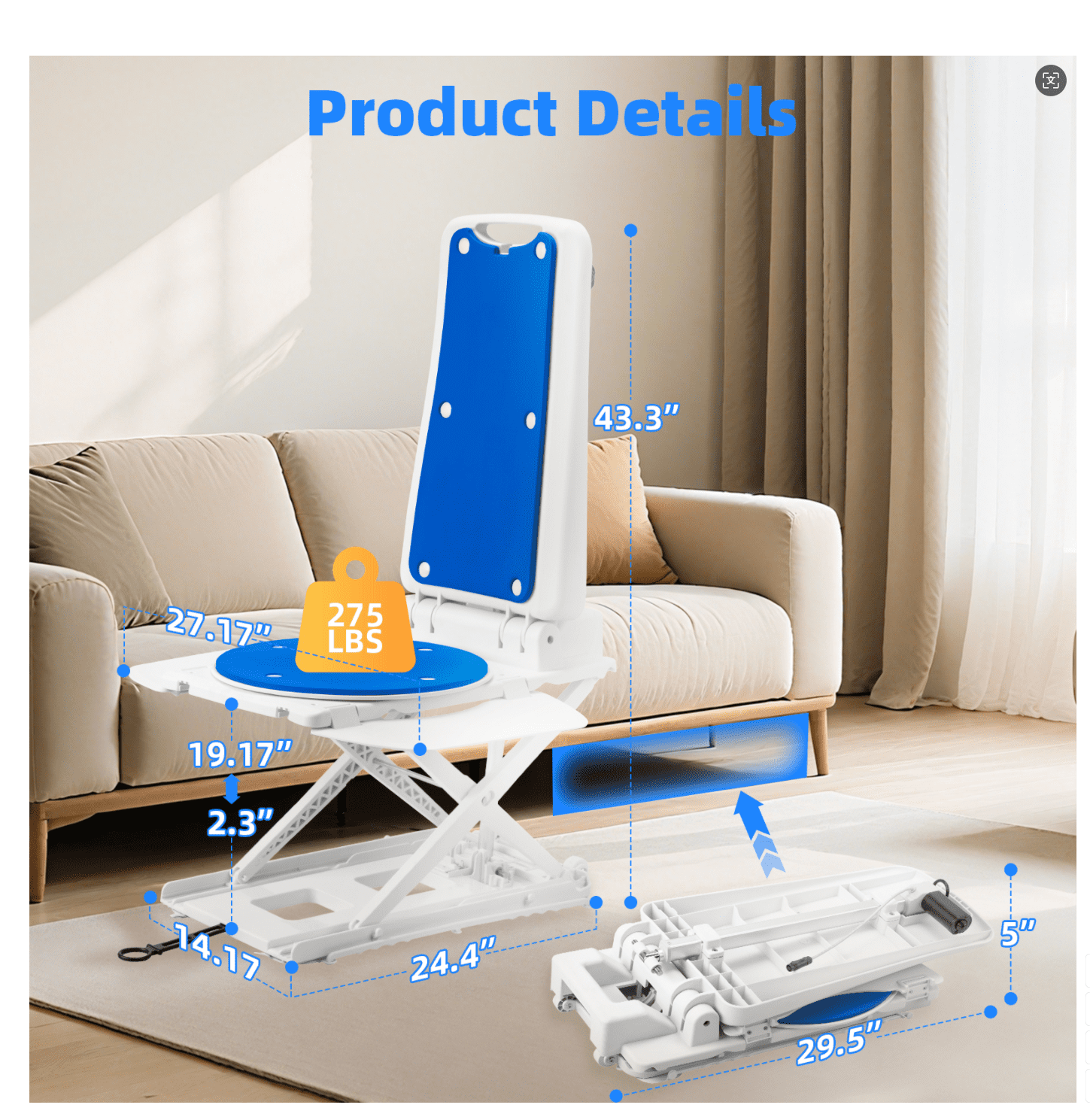 Help You move and transfer: The seat height of this Arshin Electric Lift adjusts from 2.3" to 19" with a remote control for an easy and safe lift from the ground,help individuals who are inconvenient to move and transfer to enhance the quality of mobility.