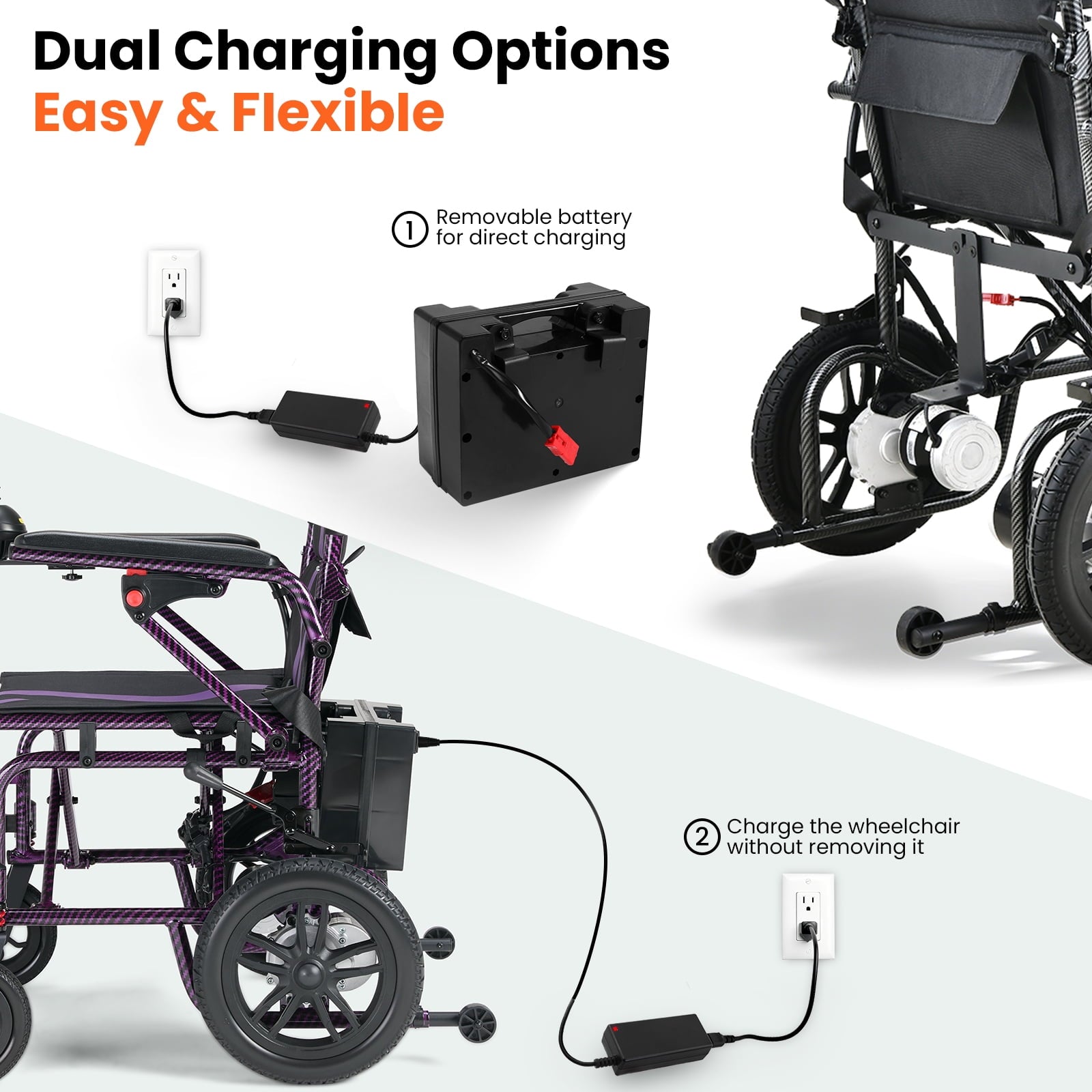 • 【High-Performance Battery, Extended Range】Equipped with a premium lead-acid battery,this motorized wheelchair delivers up to 15 miles per charge.With a top speed of 3.73 mph,enjoy longer,smoother rides without worrying about running out of power.