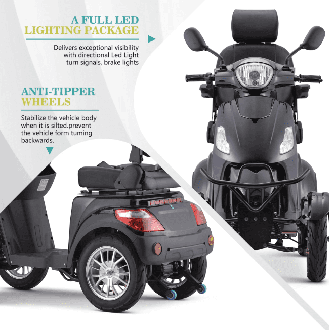 Fun & Fast 3-Speed Control:This 4-wheel fast electric mobility scooter has it all - comfort, style, speed, quality, and a good price. With a variable speed control dial, you can adjust your speed from 1 mph to 15 mph, putting you in control of your ride. Whether you have difficulty walking long distances or just want a fun, fast way to get around town, this motorized scooter will get you there in style!