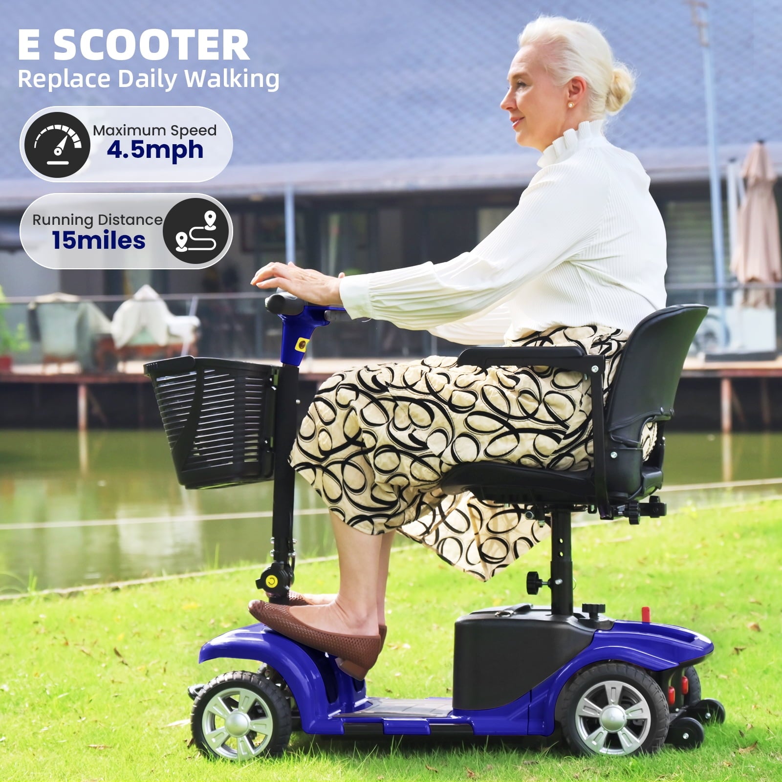 Arshin Mobility Scooters for Seniors,4 Wheels Outdoor Mobility Scooters Lightweight and Portable,180W 24V Electric Mobility Scooters with High-Power Motor,Suitable for Travel,Adults,Elderly(Blue)