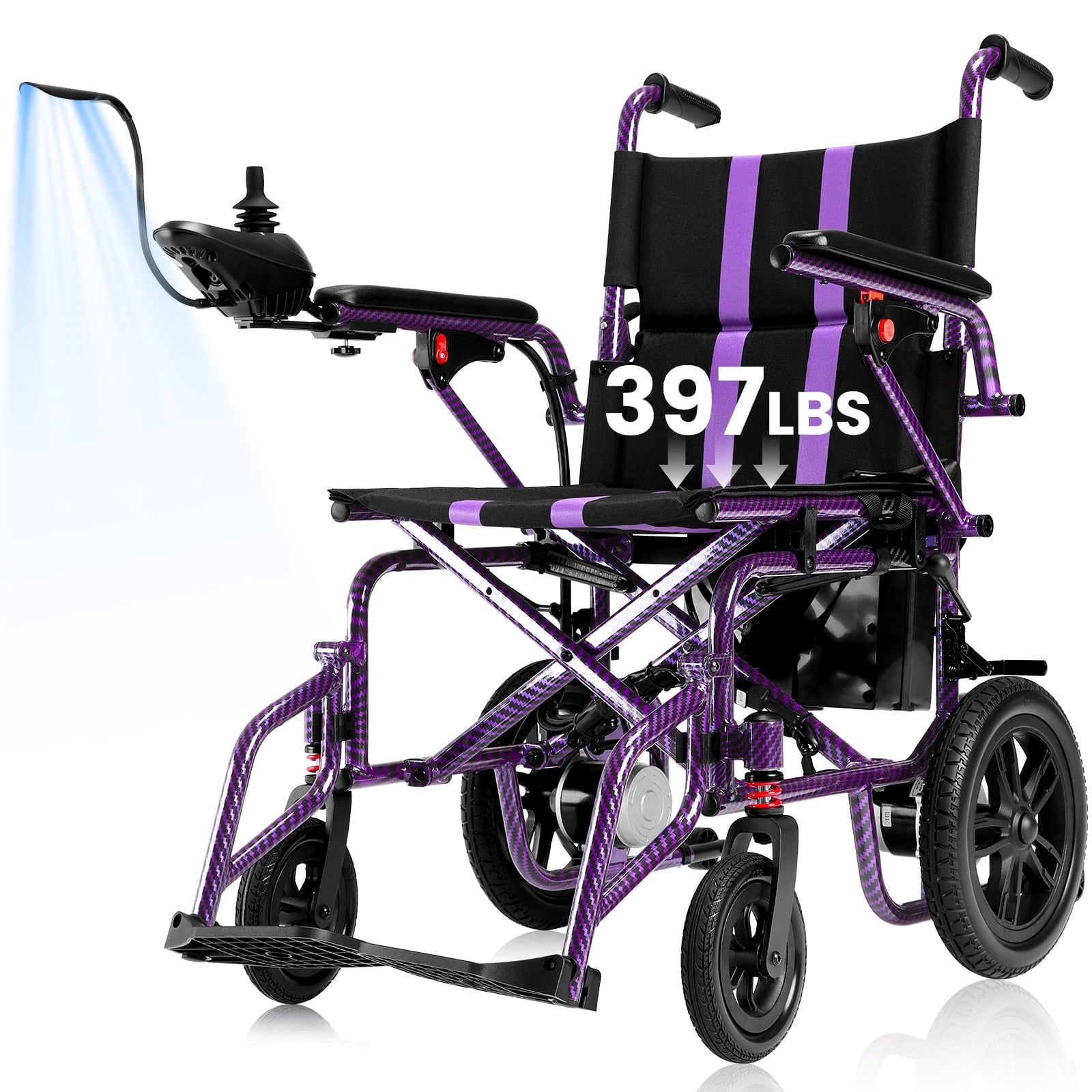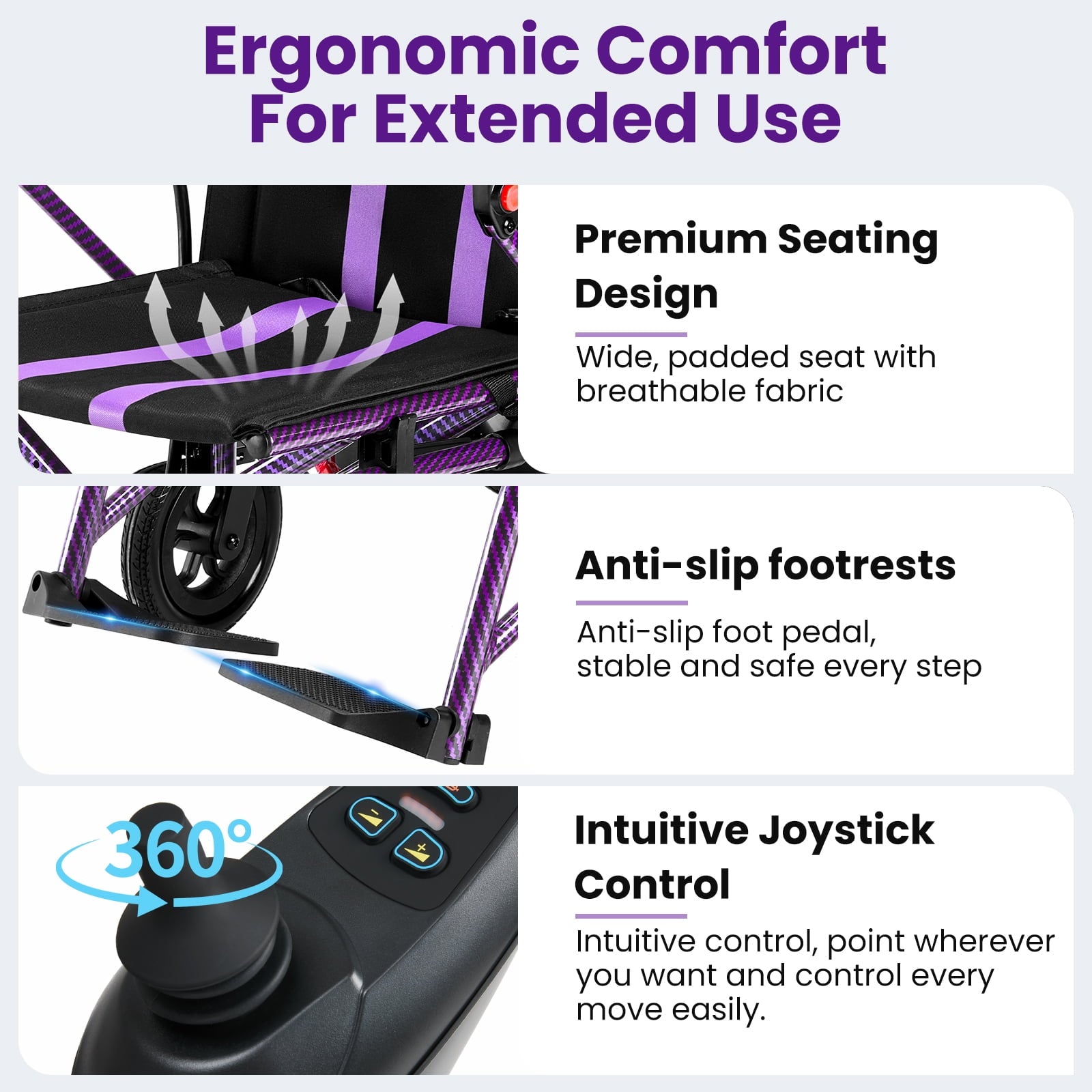 Arshin Upgrade 15+ Miles Range Electric Wheelchairs for Adults,Arshin Electric Wheelchair Lightweight Foldable with 360°Joystick,All Terrain Dual Motors Silent,USB Port,397 lbs Capacity(Purple)