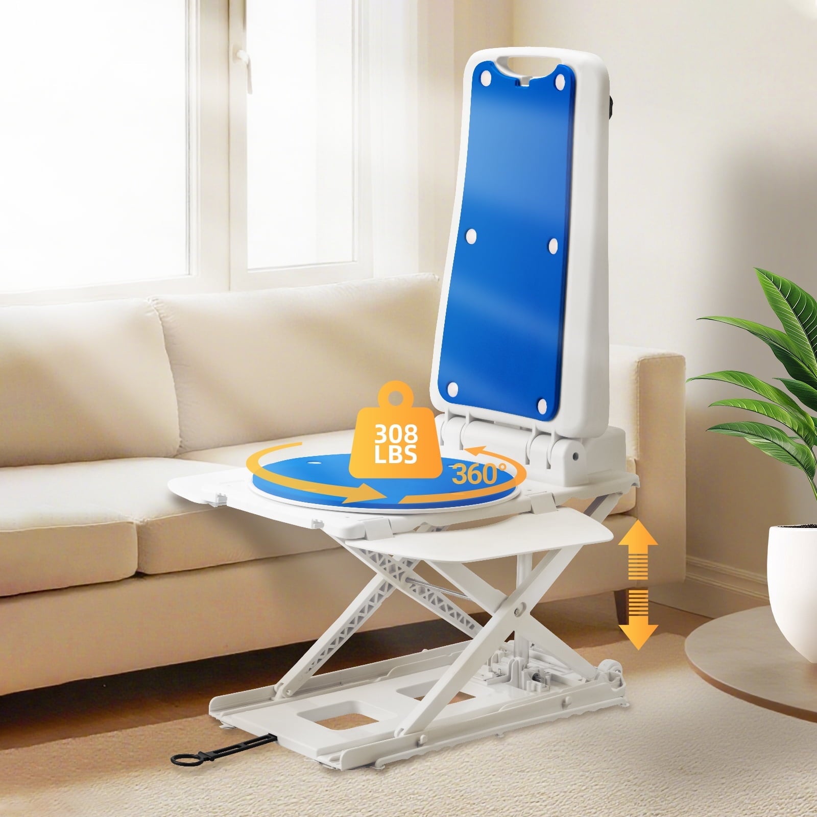• [Durable and Portable] Lightweight chair lift weighs 23 lbs. floor lift can support max weight capacity of 308lb.The whole lifting process is smooth and slow. Provides convenience and safety for the elderly.