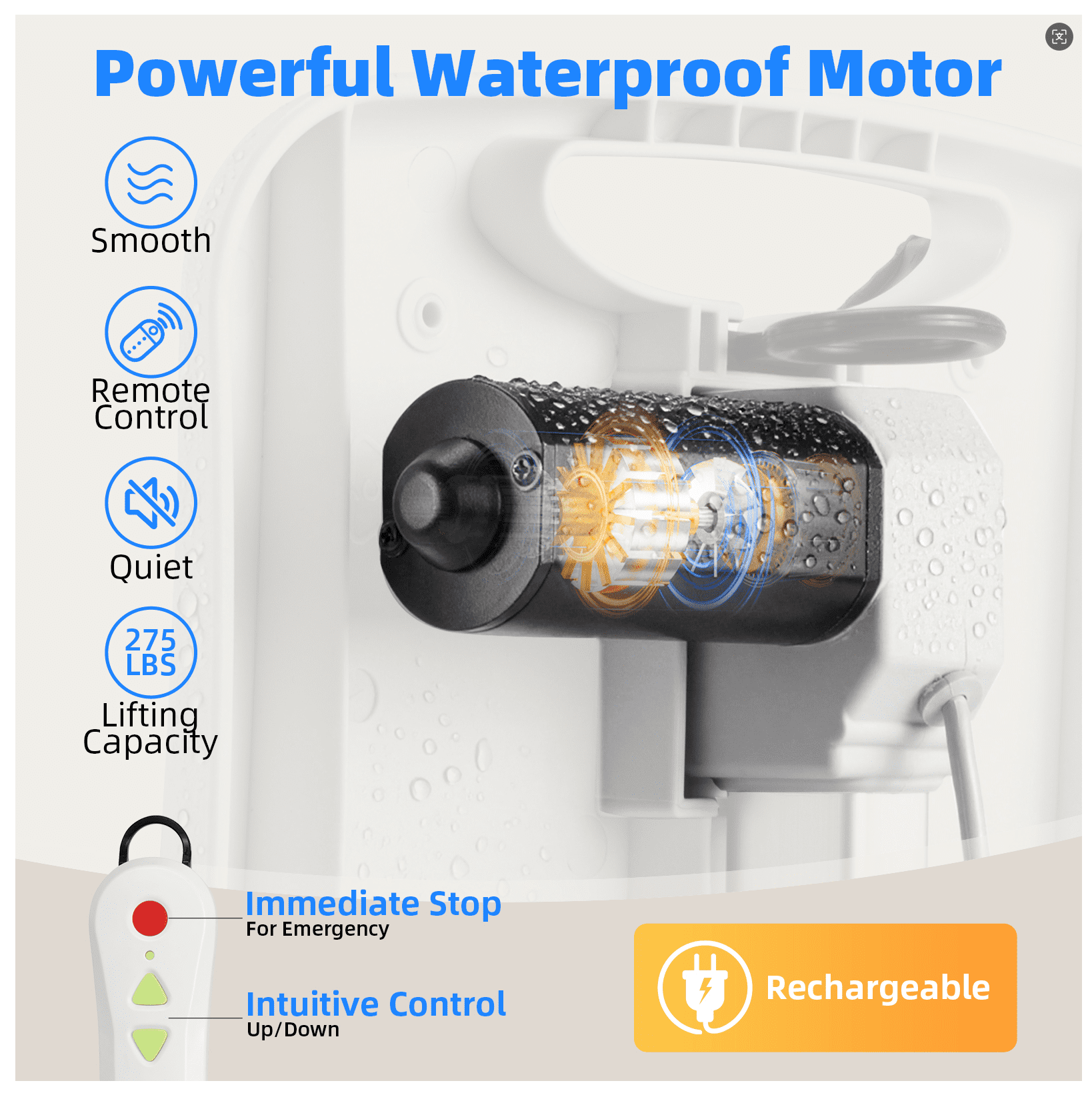 Electric Chair Lift for Senior,Remote Control Floor with Padded Backseat,Bathtub Lift Elderly from Floor,Net Weight 24 lbs,Support Max 308 lbs,Safety and Waterproof Design