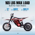 🏅[165LBS Load-Bearing Capacity]: Load-bearing capacity is an aspect we are very concerned about. Considering that most of the applicable population are children aged 6-13, we have equipped this e dirt bike with a high load-bearing capacity of 165lbs, which can perfectly cover the applicable population and provide parents and children with the most reassuring protection.