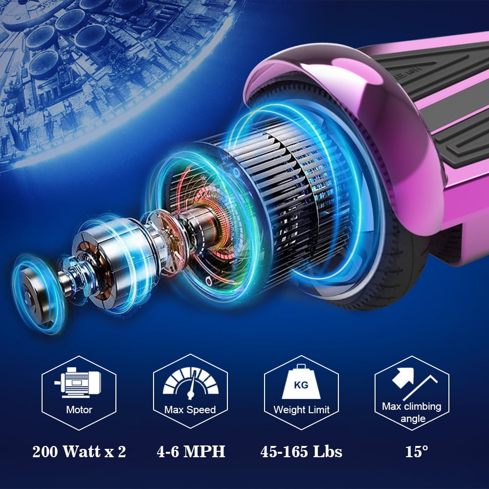 MOSTA All Terrain Self-Balance Scoote ,Electric Scooter Board for Kids & Adults with Bluetooth and Led Lights,6.5 inch,165 lbs capacity Perfect Gift