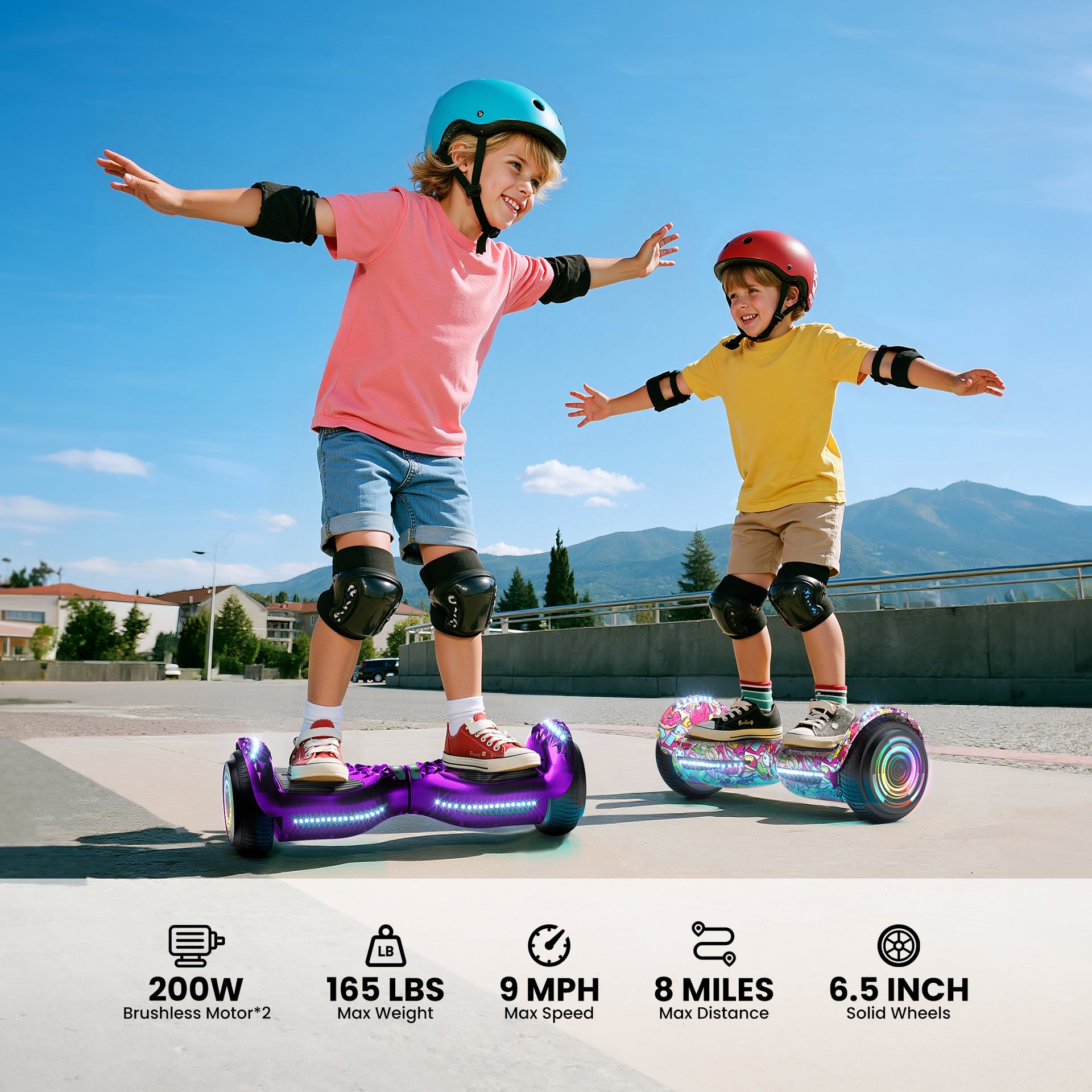 • 【Self Balancing System】- 6. 5" wheels with high quality rubber tires and comfortable foot pedals, provide smooth riding experience. Smart Self balancing system makes it easier than ever for beginners to learn to ride a hoverboard.