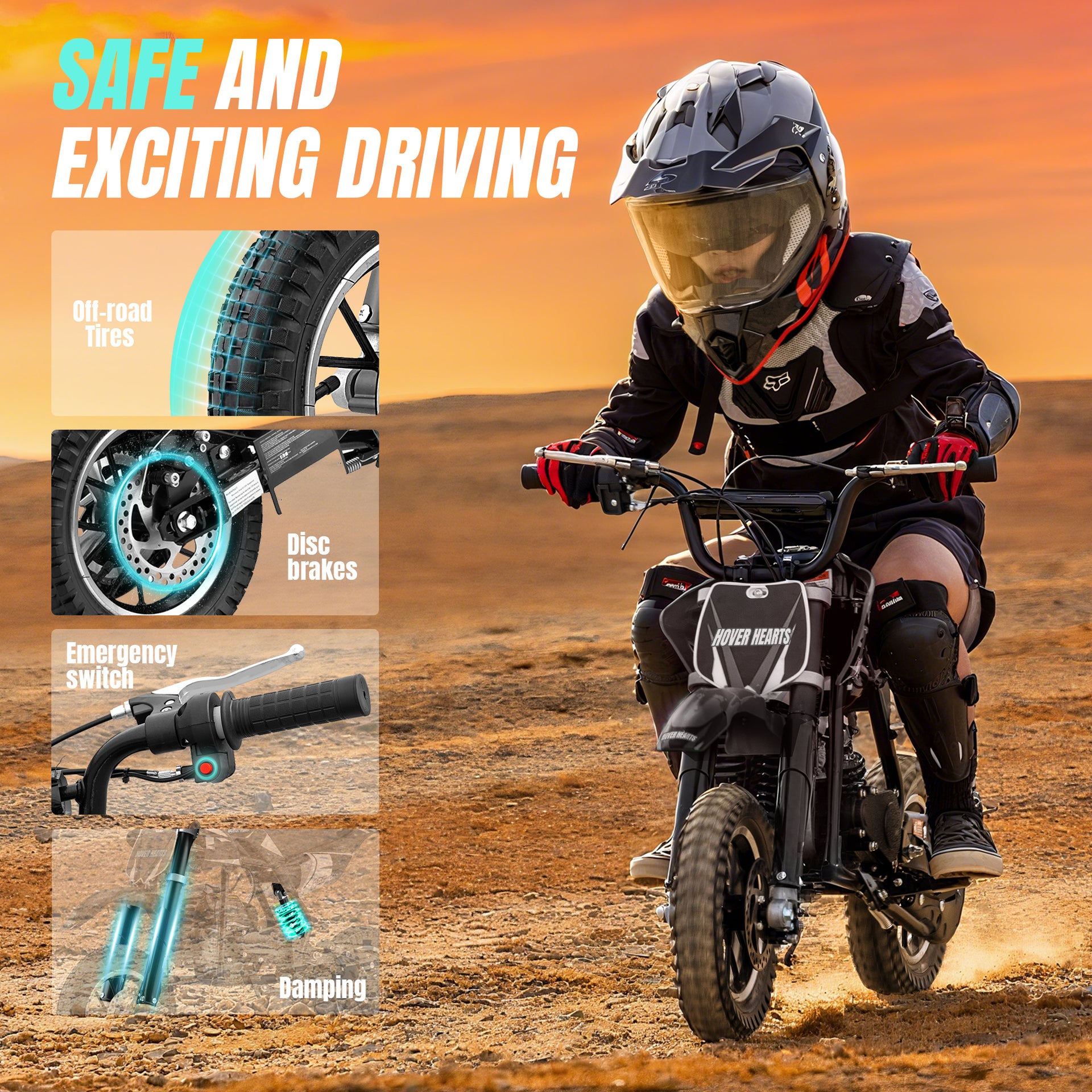 • Mini dirt bike provides easy pull start operations, and kids can start the 49cc dirt bike up easily. Low-pressure pneumatic tires provide soft & smooth ride.
