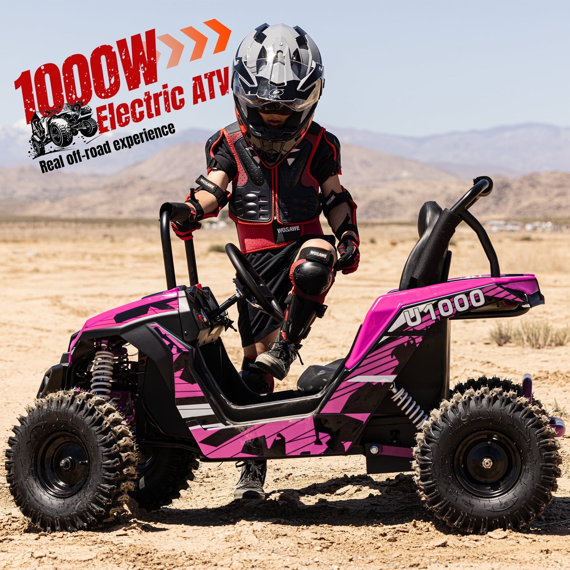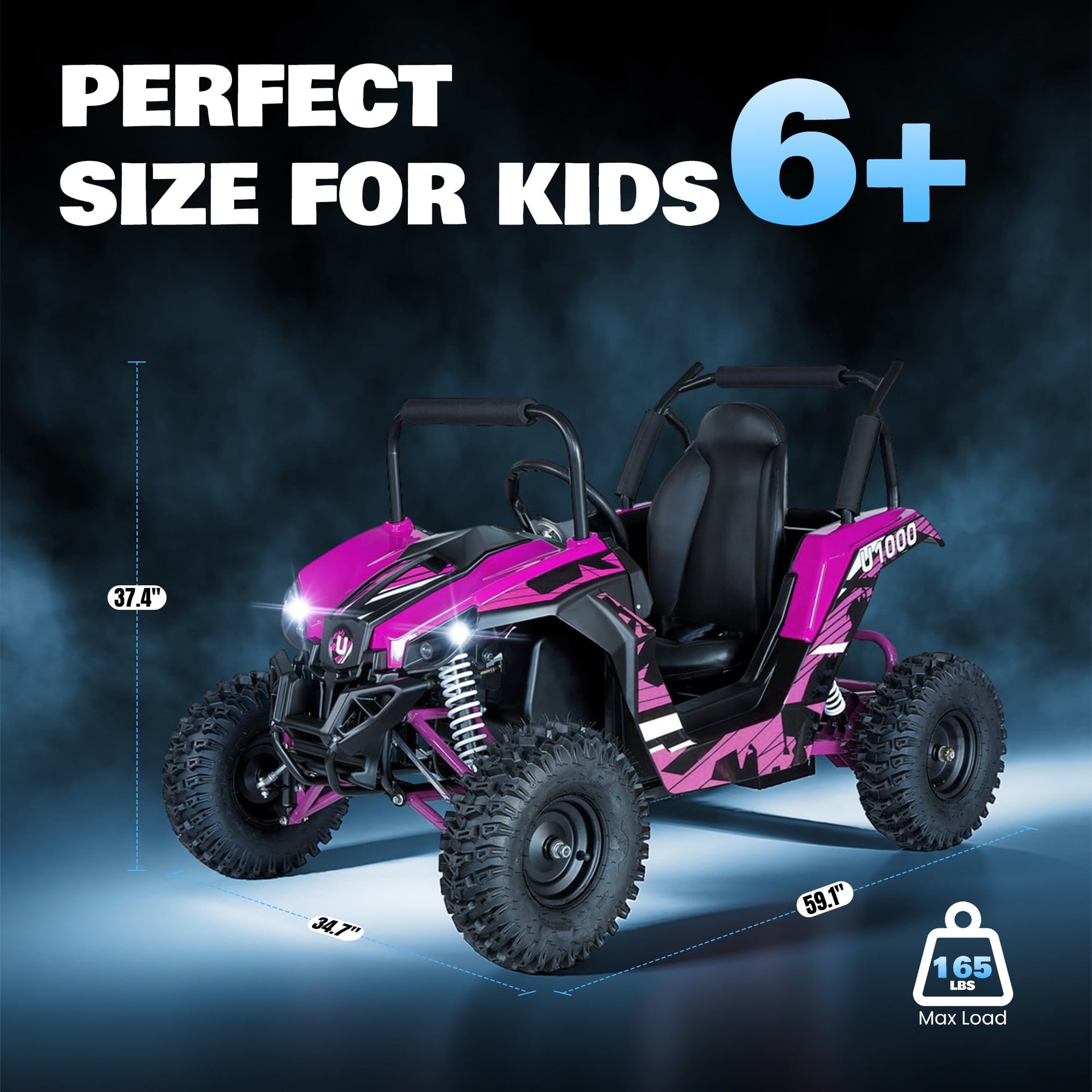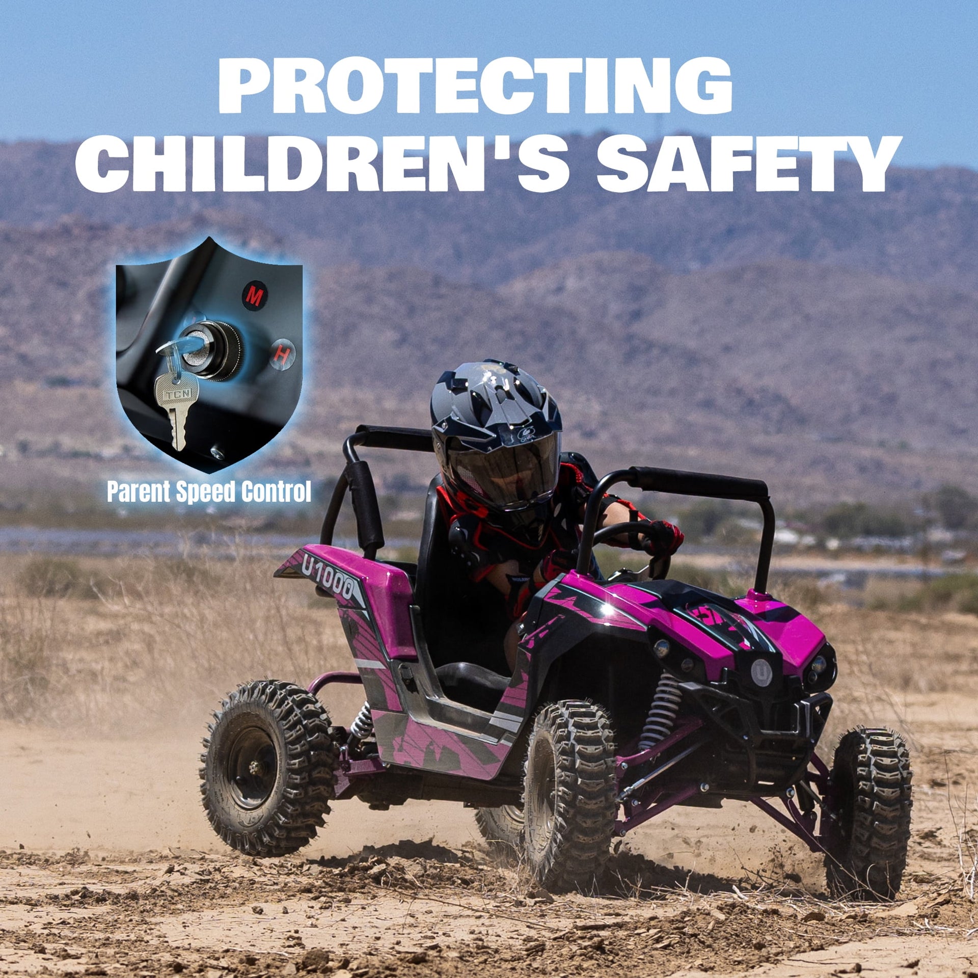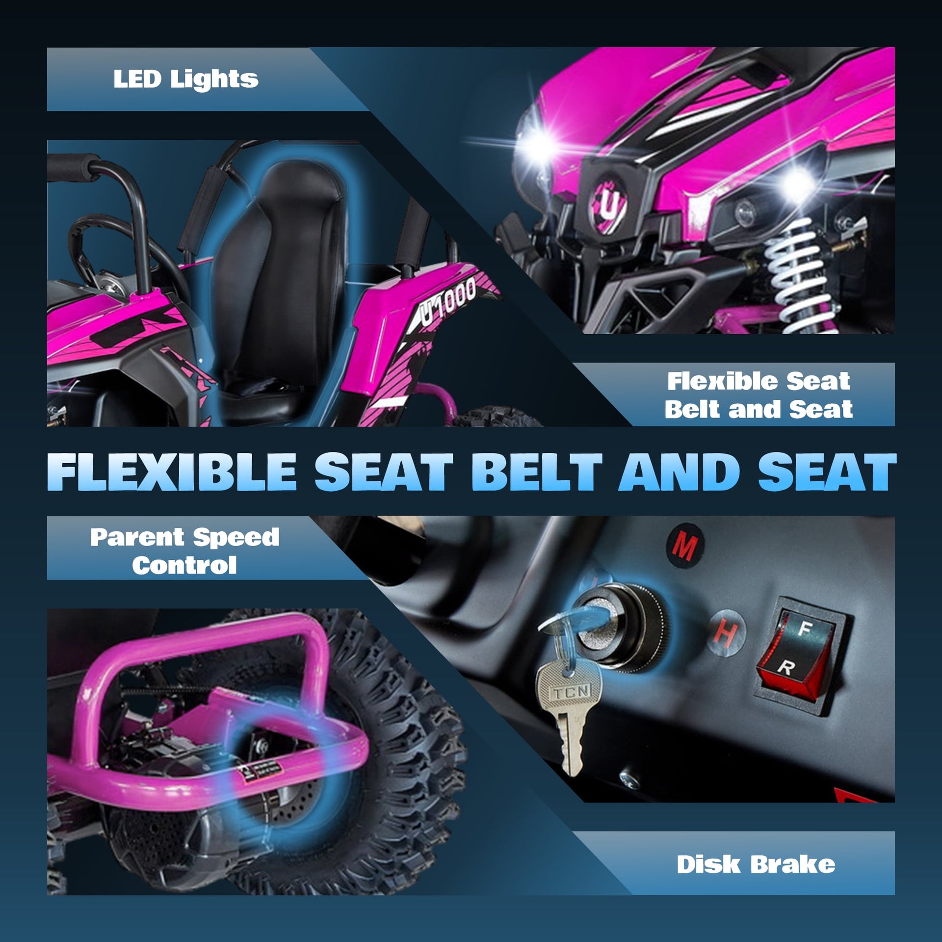 QEASET 48V UTV Electric Off-Road Vehicle for Adults, 3-Speed with Safety Lock, Shock Absorbers, Disc Brakes, Steel Frame & Adjustable Seat – All-Terrain Side-by-Side(Pink)