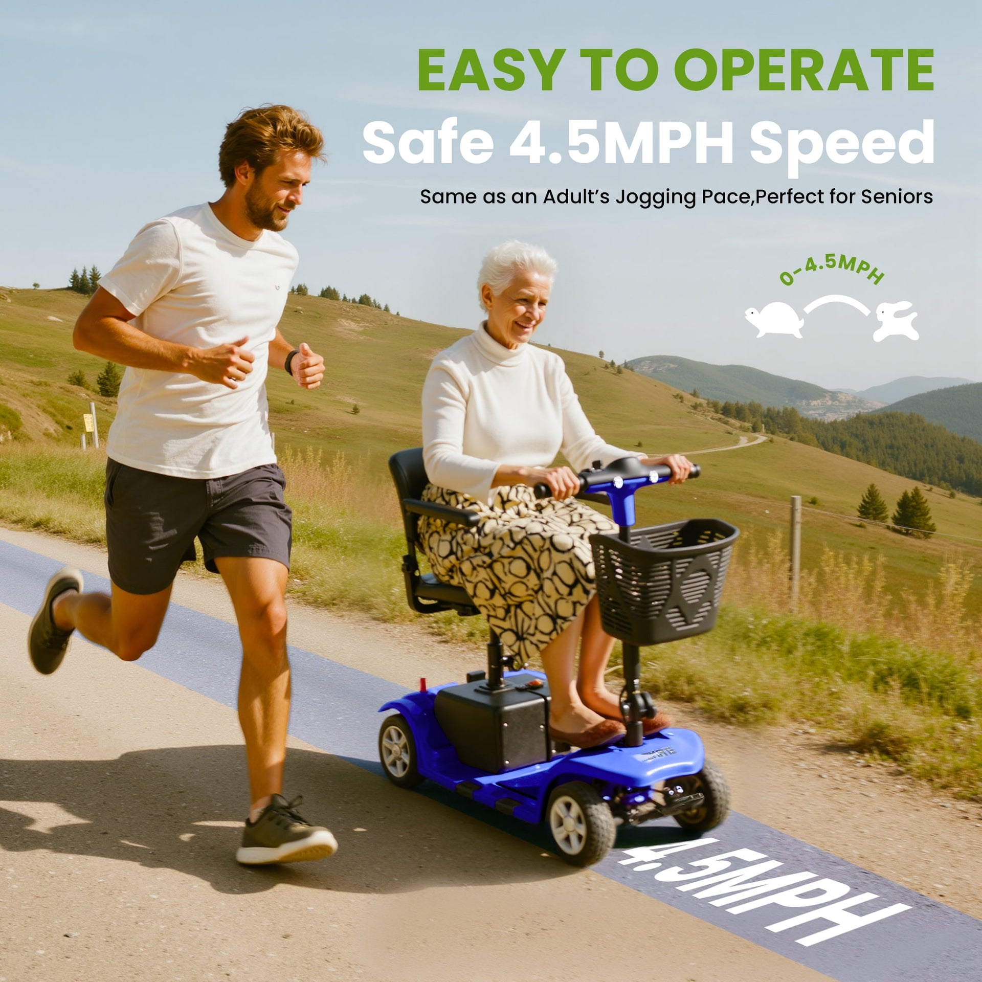 QEASET 4 Wheels Mobility Scooter for Seniors, Electric Folding Wheelchair Device for Travel, Blue