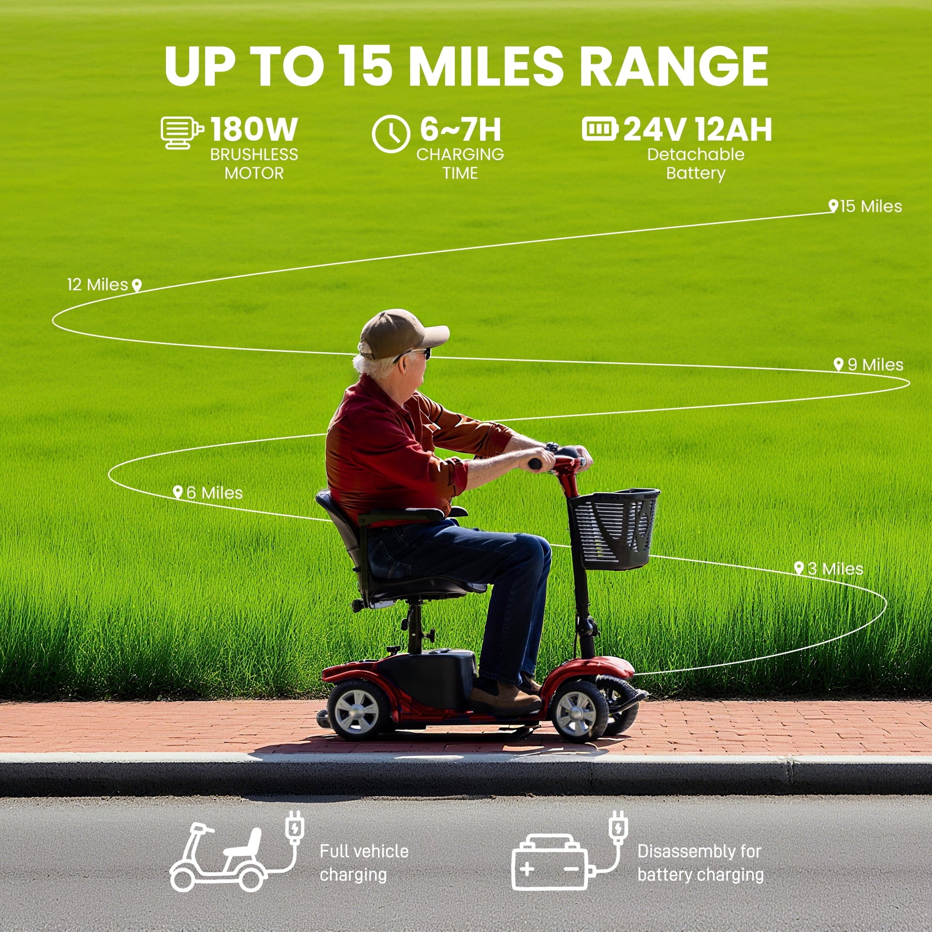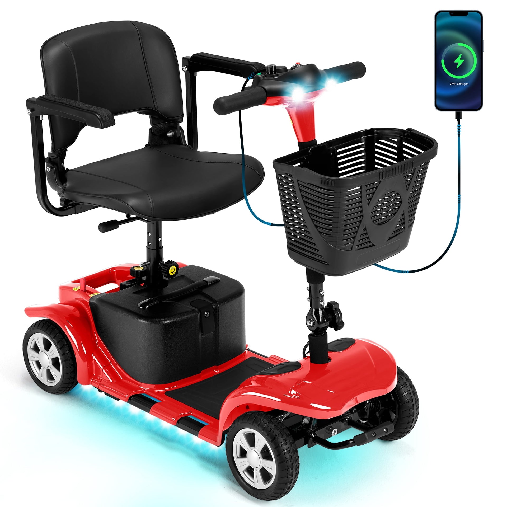 QEASET 4 Wheels Mobility Scooter for Seniors, Electric Folding Wheelchair Device for Travel, Red