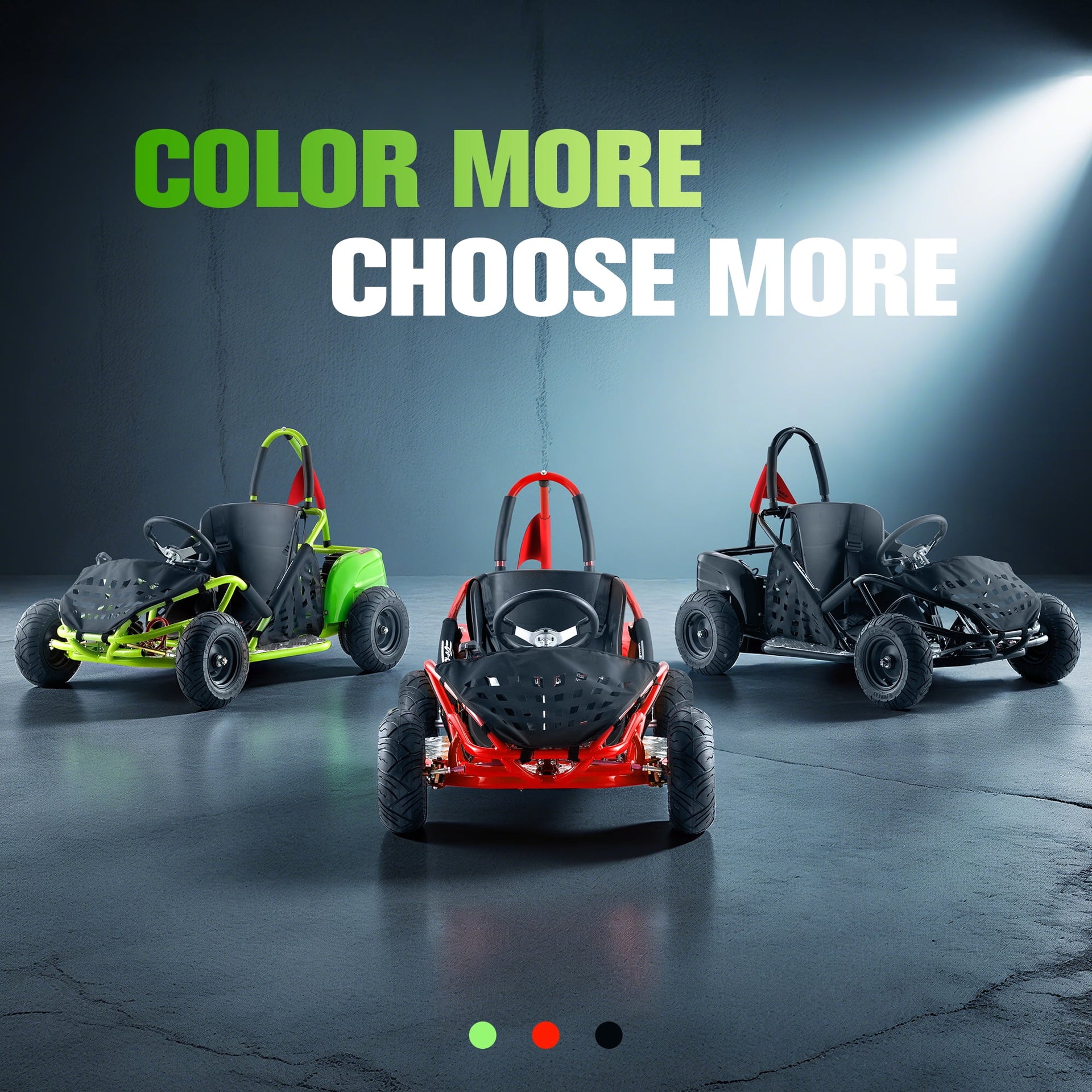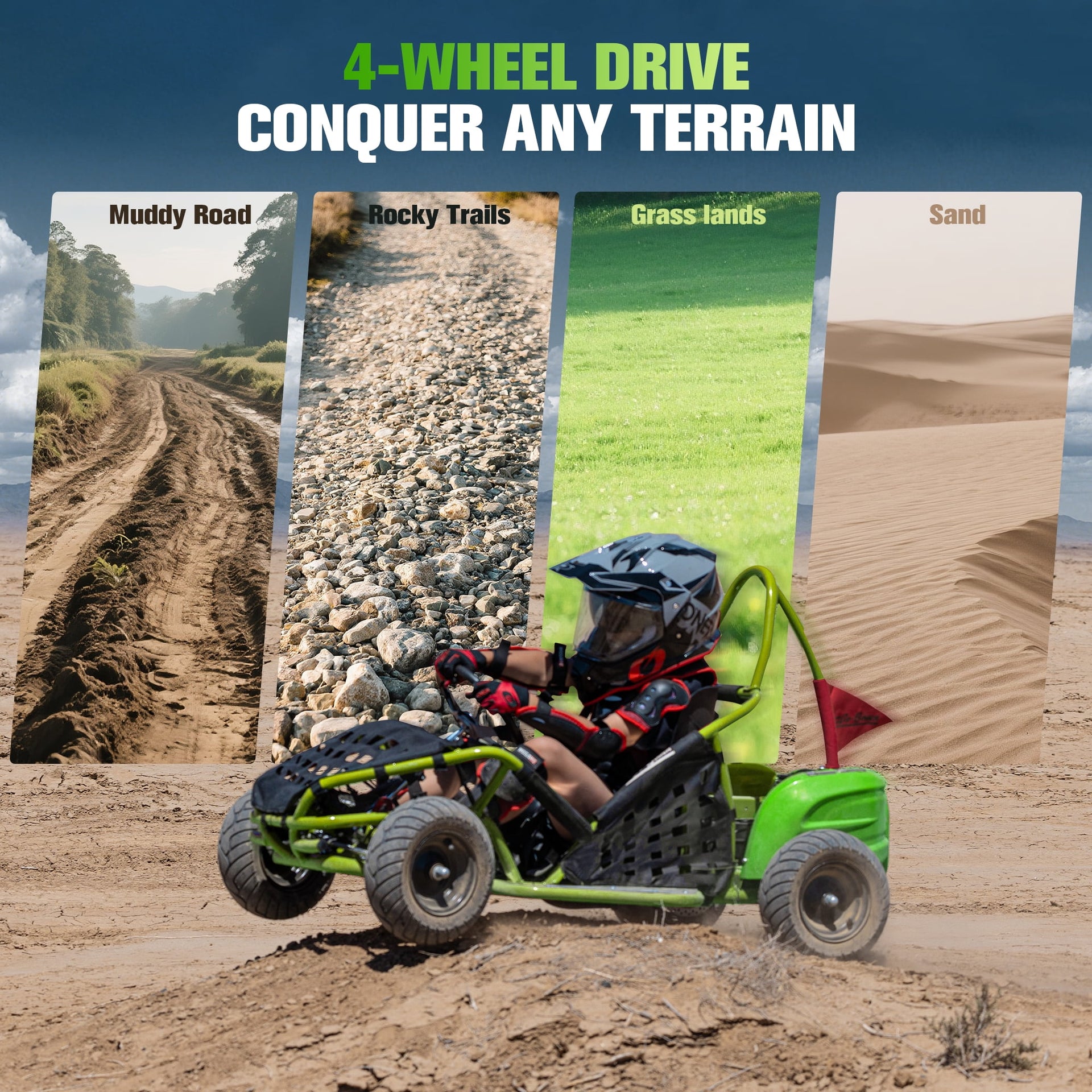 QEASET 48V Electric Go-Kart 1000W Brushless Motor, 20mph Max, 13" All-Terrain Tires, High-Tensile Steel Frame, 4-Point Seat Belt, 3-Speed Control, Hydraulic Disc Brake,Green