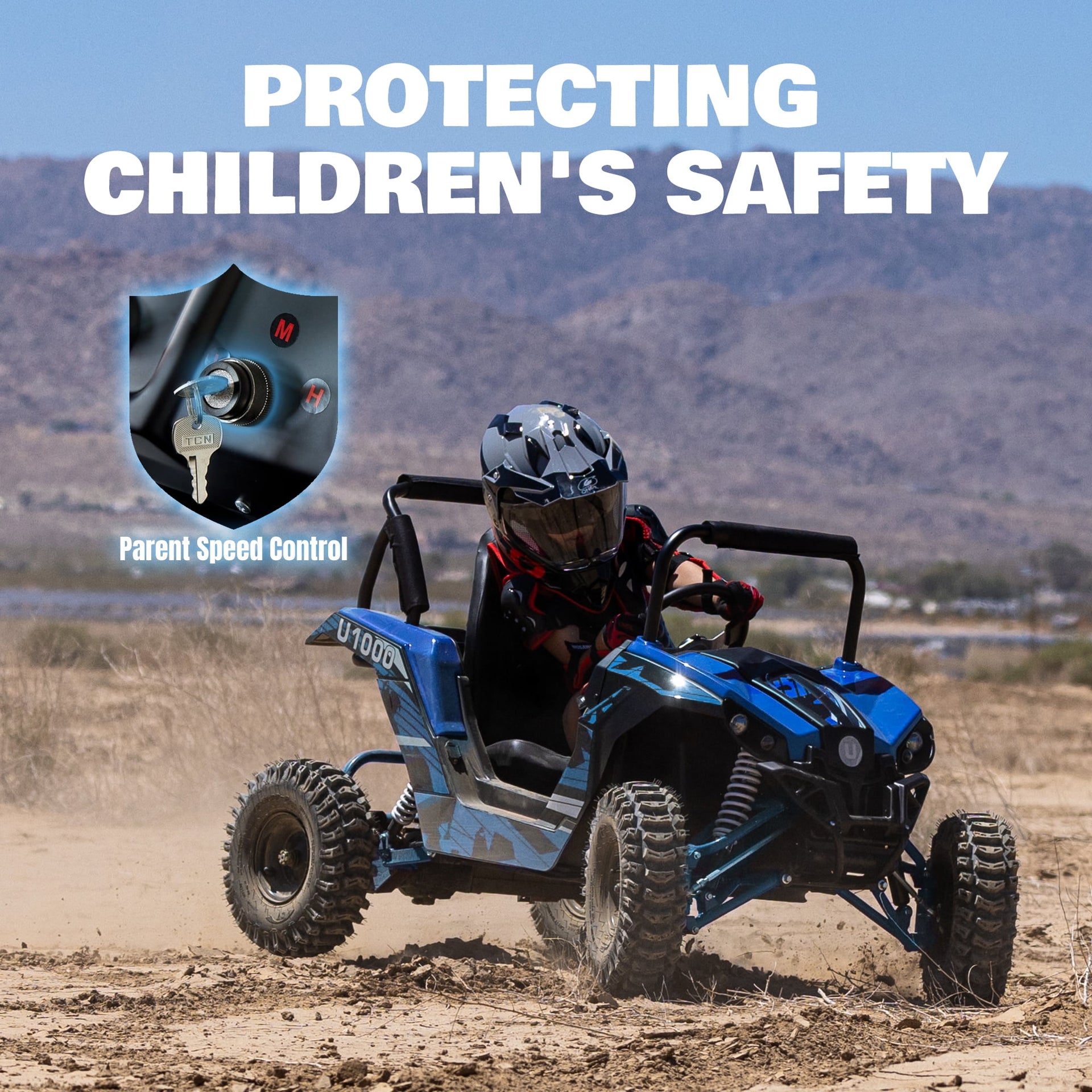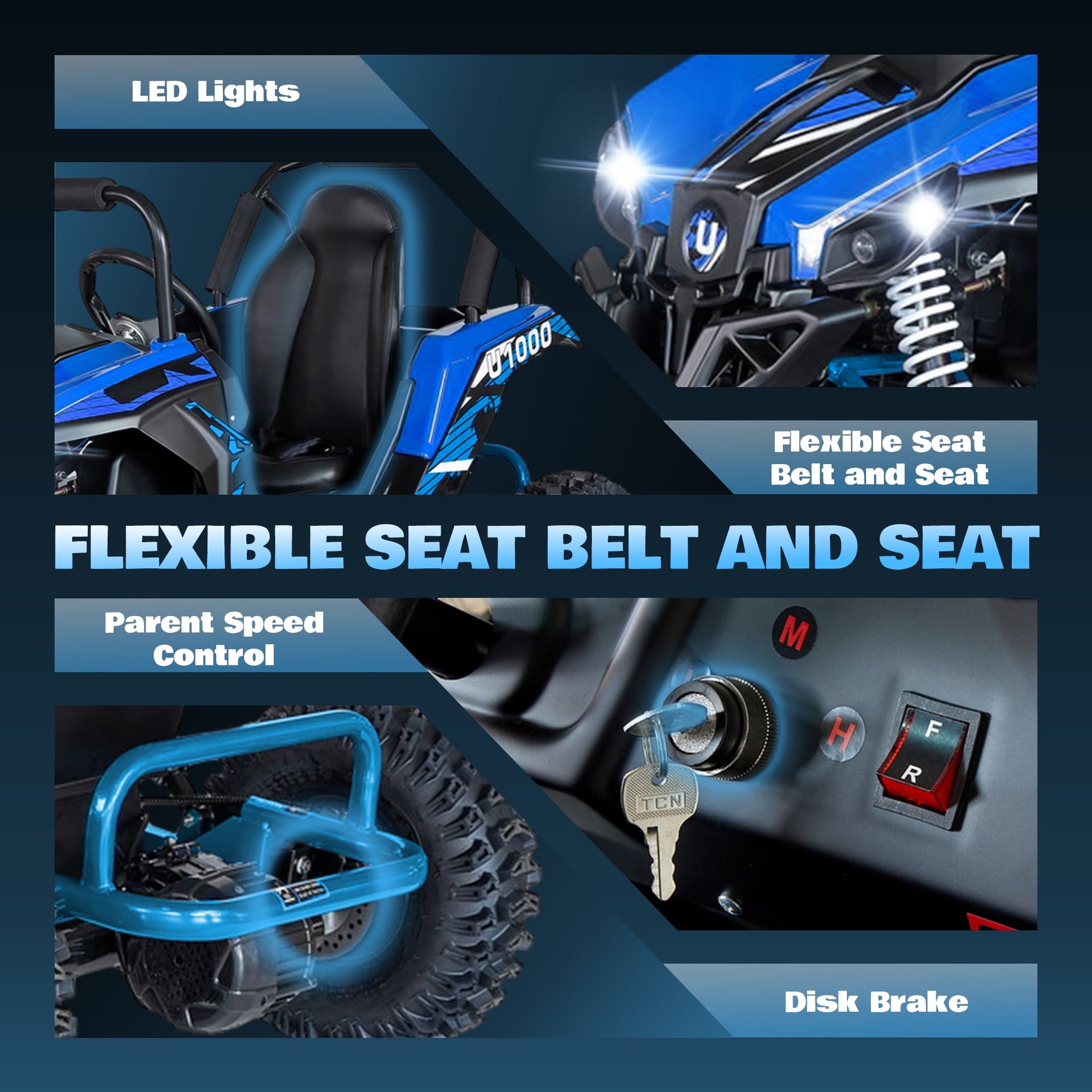QEASET 48V UTV Electric Off-Road Vehicle for Adults, 3-Speed with Safety Lock, Shock Absorbers, Disc Brakes, Steel Frame & Adjustable Seat – All-Terrain Side-by-Side(Blue)