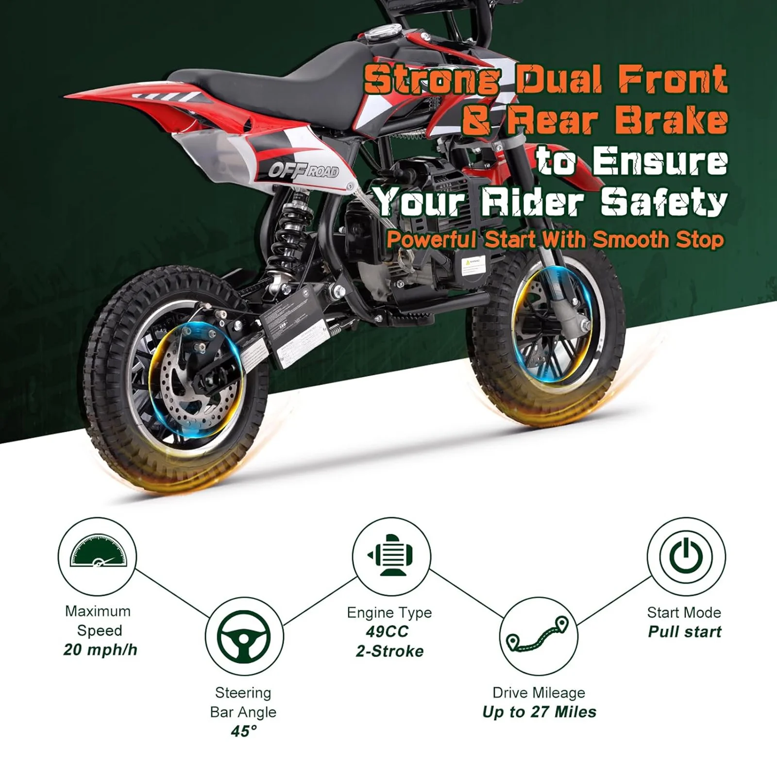 QEASET 49CC Dirt Bike, Gas Powered Mini Bike, Red