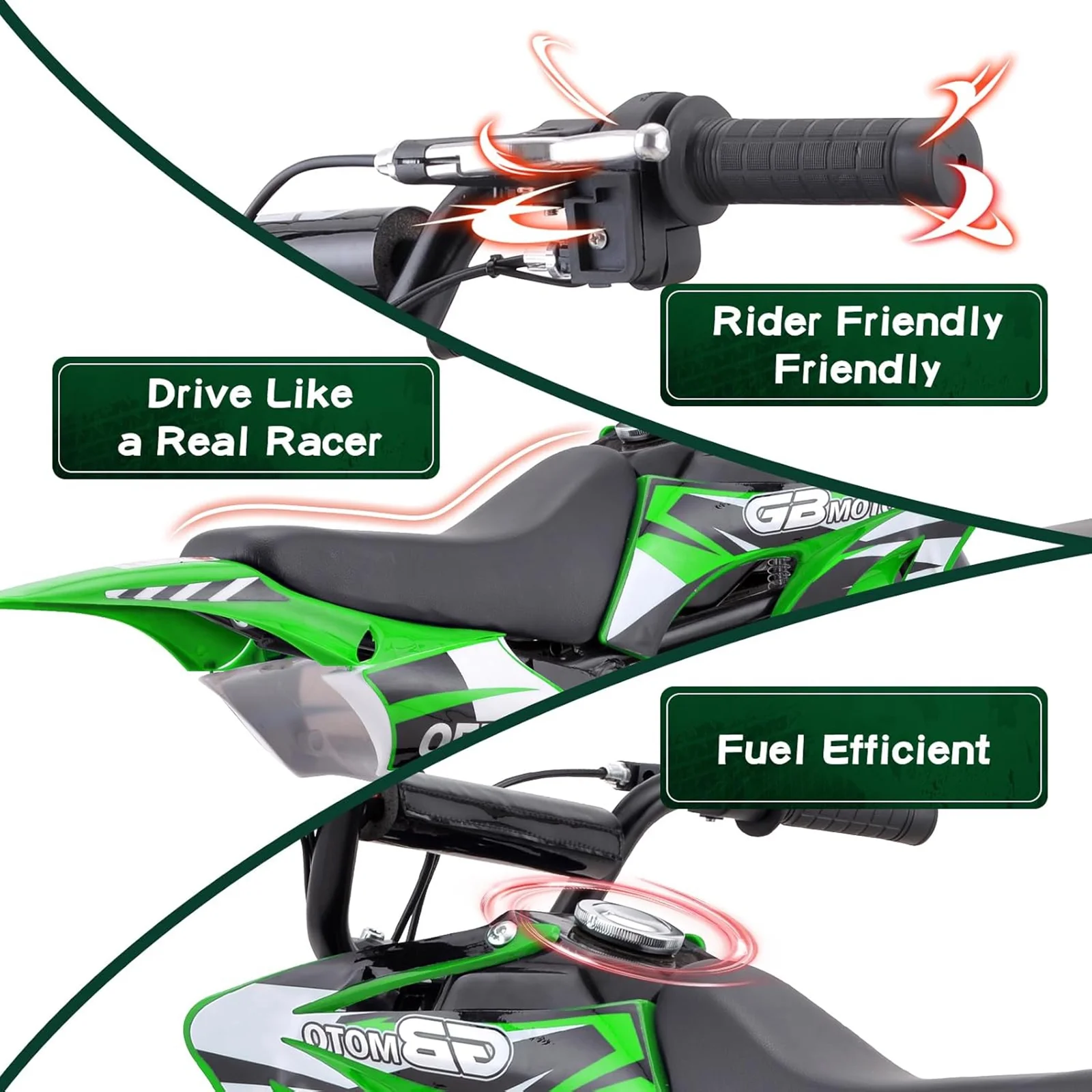 QEASET 49CC Dirt Bike, Mini Bike 2-Stroke Gas Powered off Road with Max Speed 20MPH, Pull Start