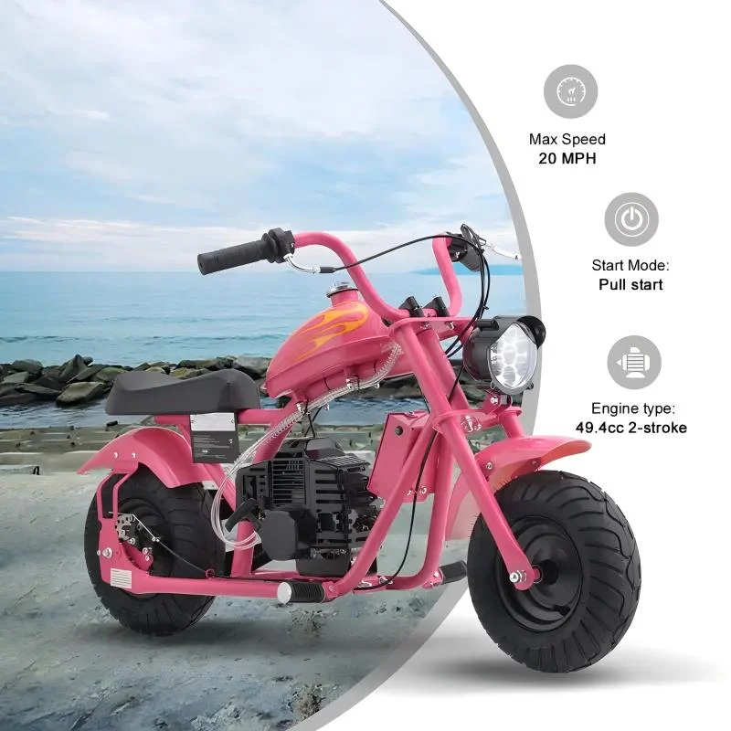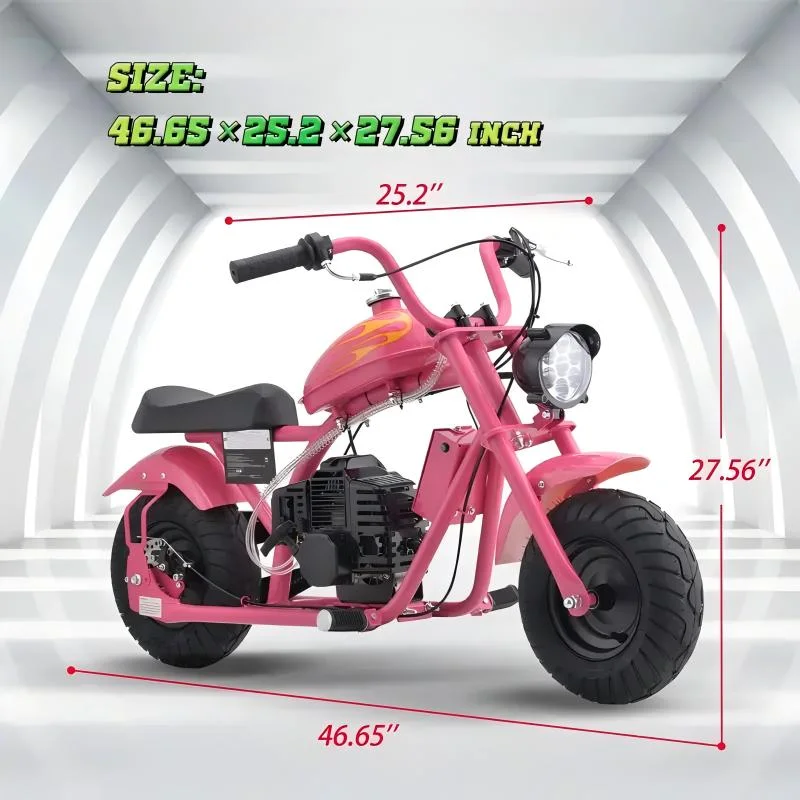 QEASET 49cc Gasoline Mini Dirt Bike, LED Headlight, Max Load 160Lbs, Max Speed 18mph, Age13+(Pink)