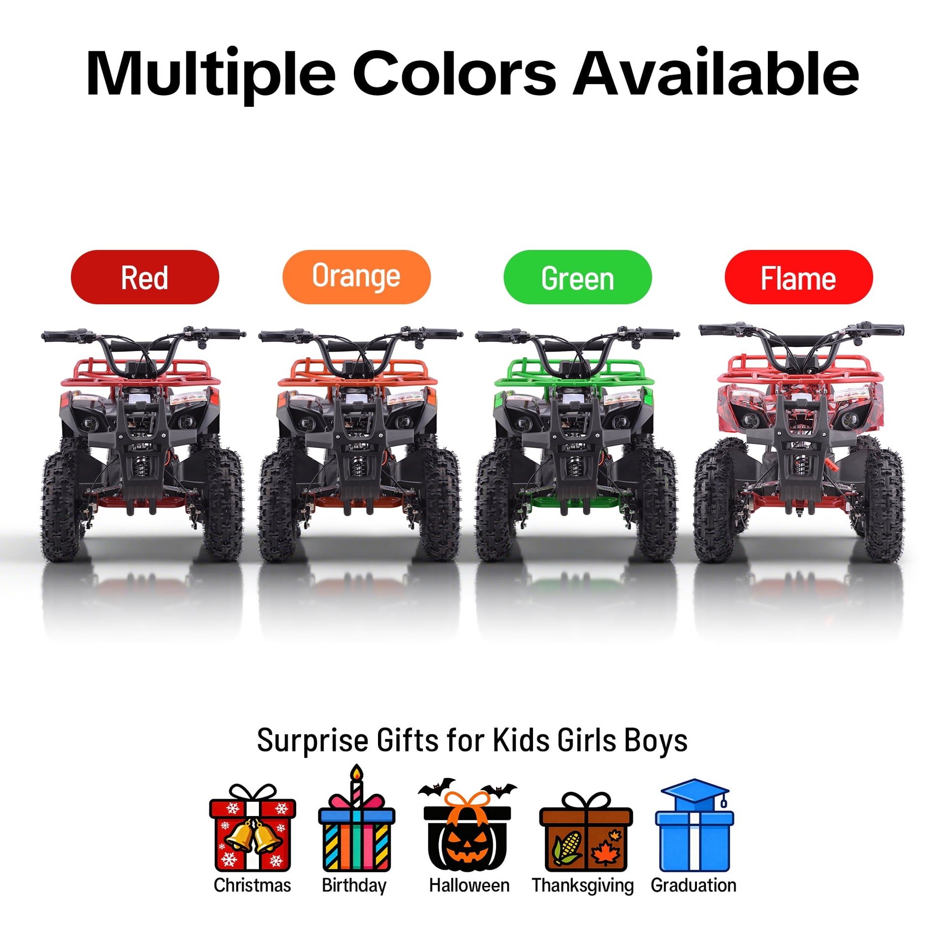 QEASET 500W 36V Battery Ride-On Off-Road 4-Wheeler – 15-Mile Range, Flame