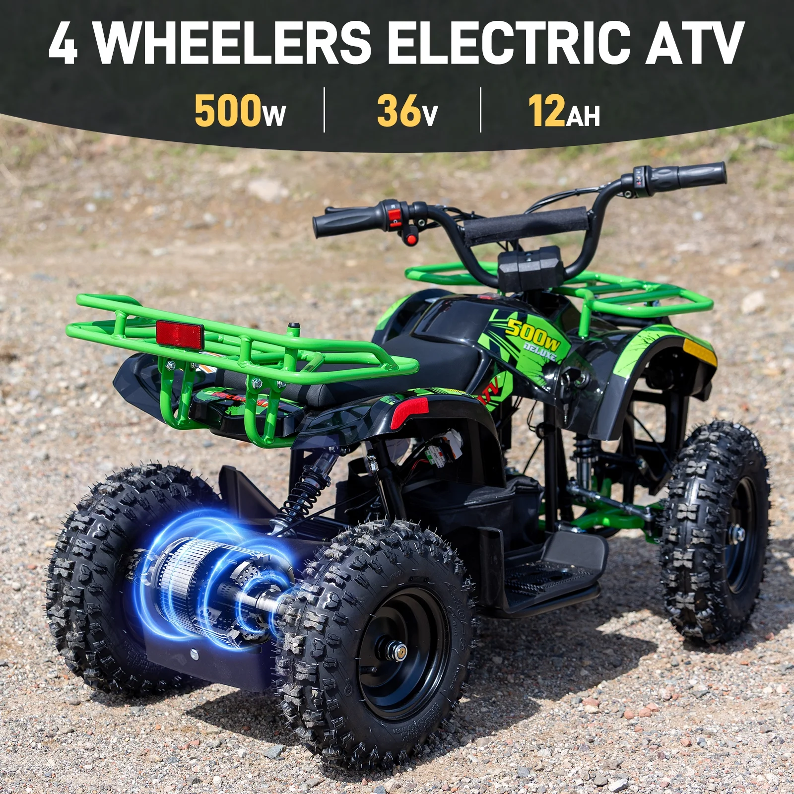 500W 36V Battery Ride-On Off-Road 4-Wheeler – 15-Mile Range, Green