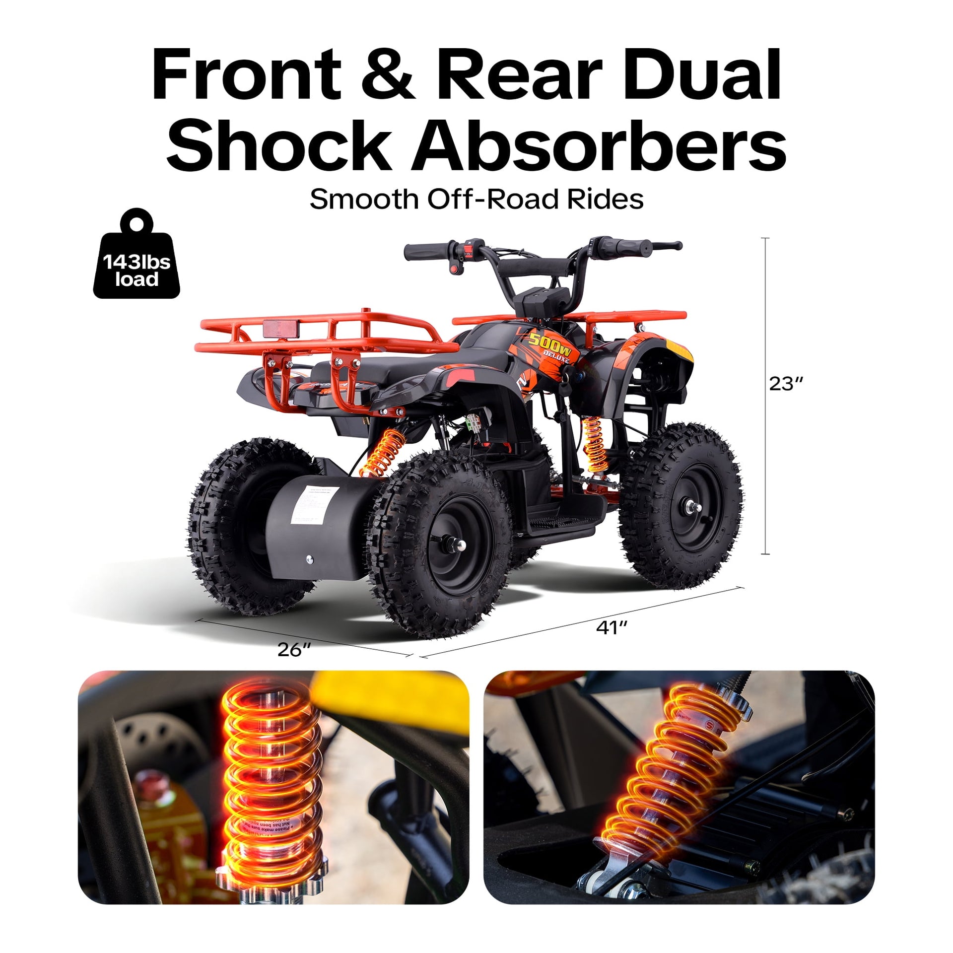 QEASET 500W 36V Battery Ride-On Off-Road 4-Wheeler – 15-Mile Range, Orange