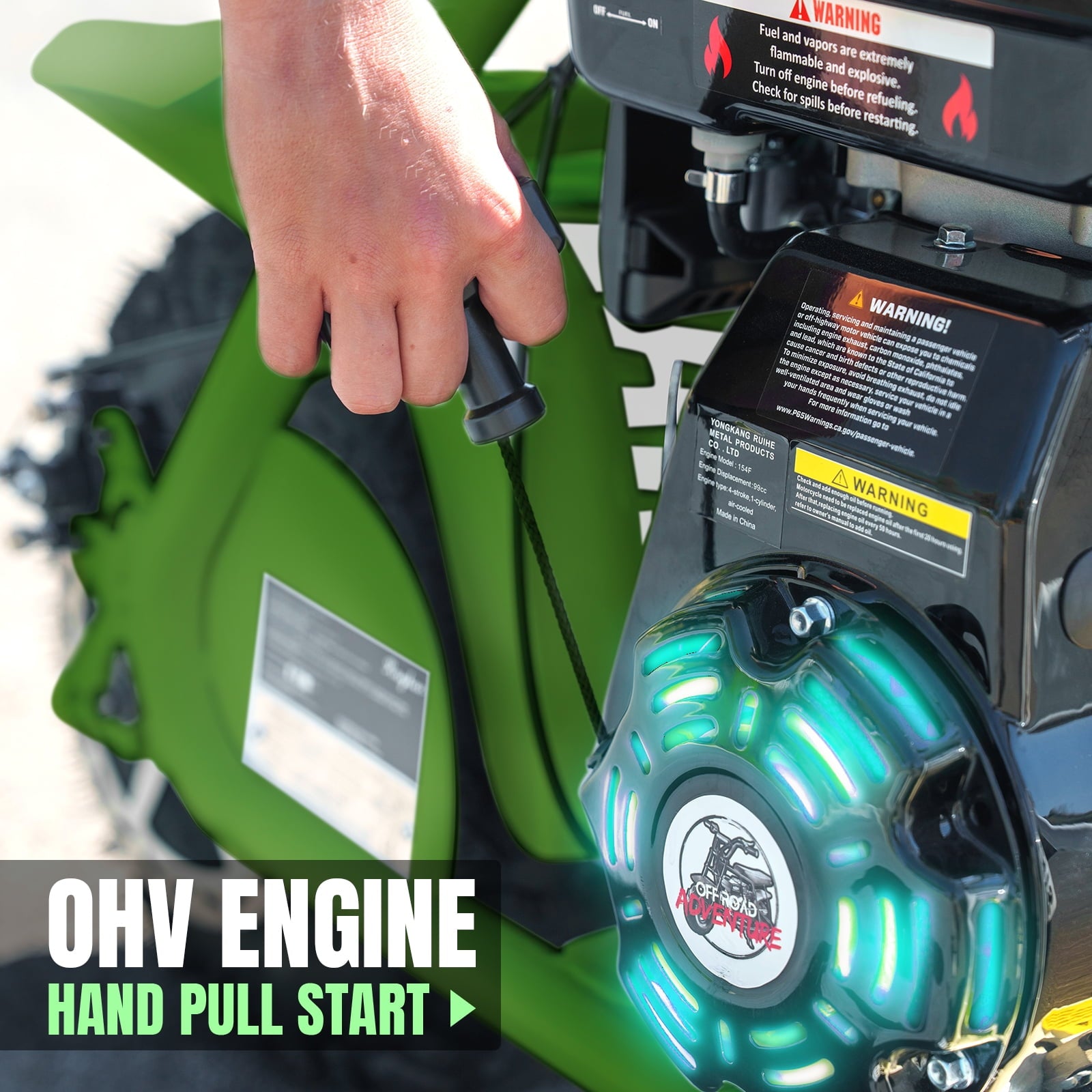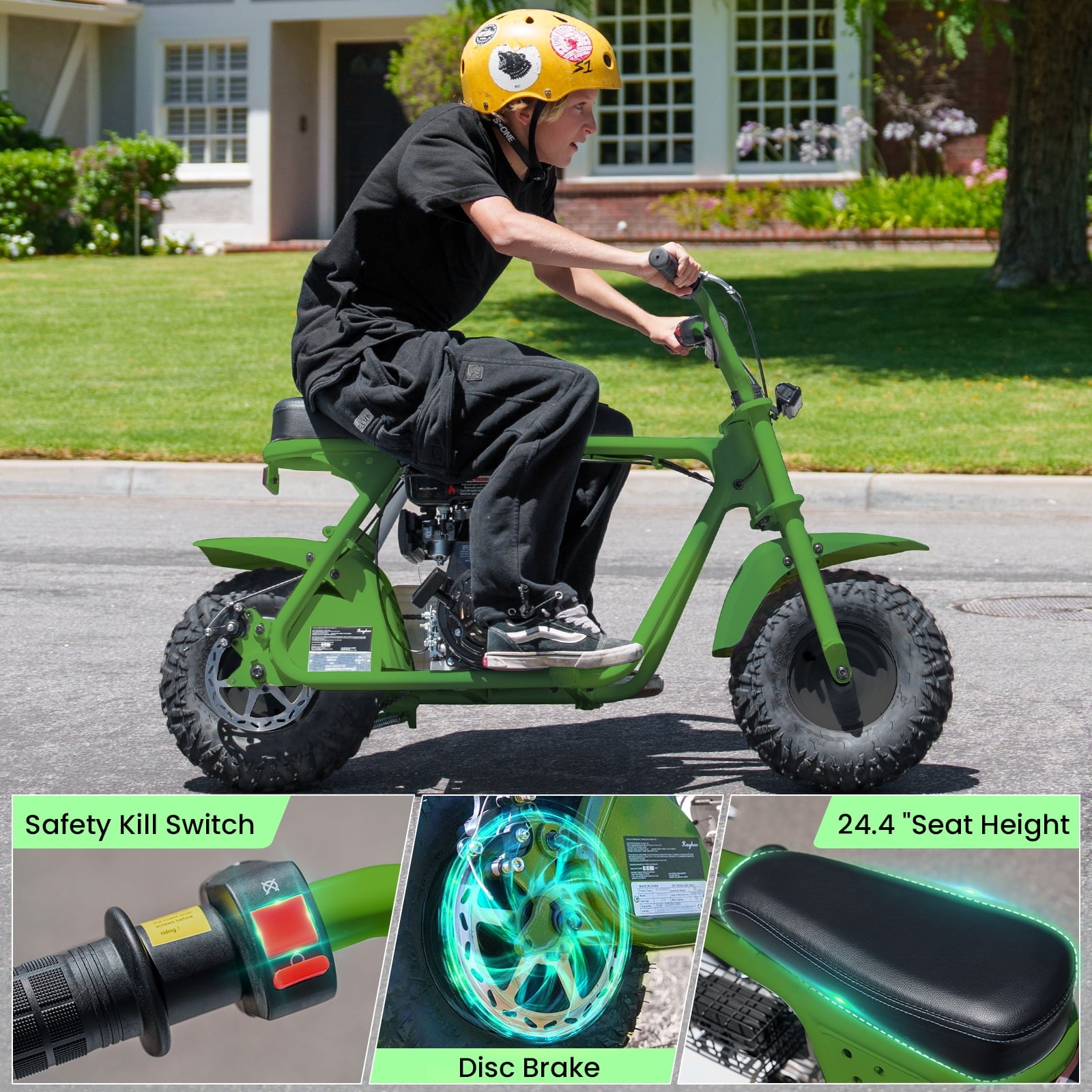QEASET 99cc Mini Bike Gas Powered, 4-Stroke with LED Headlight, Green
