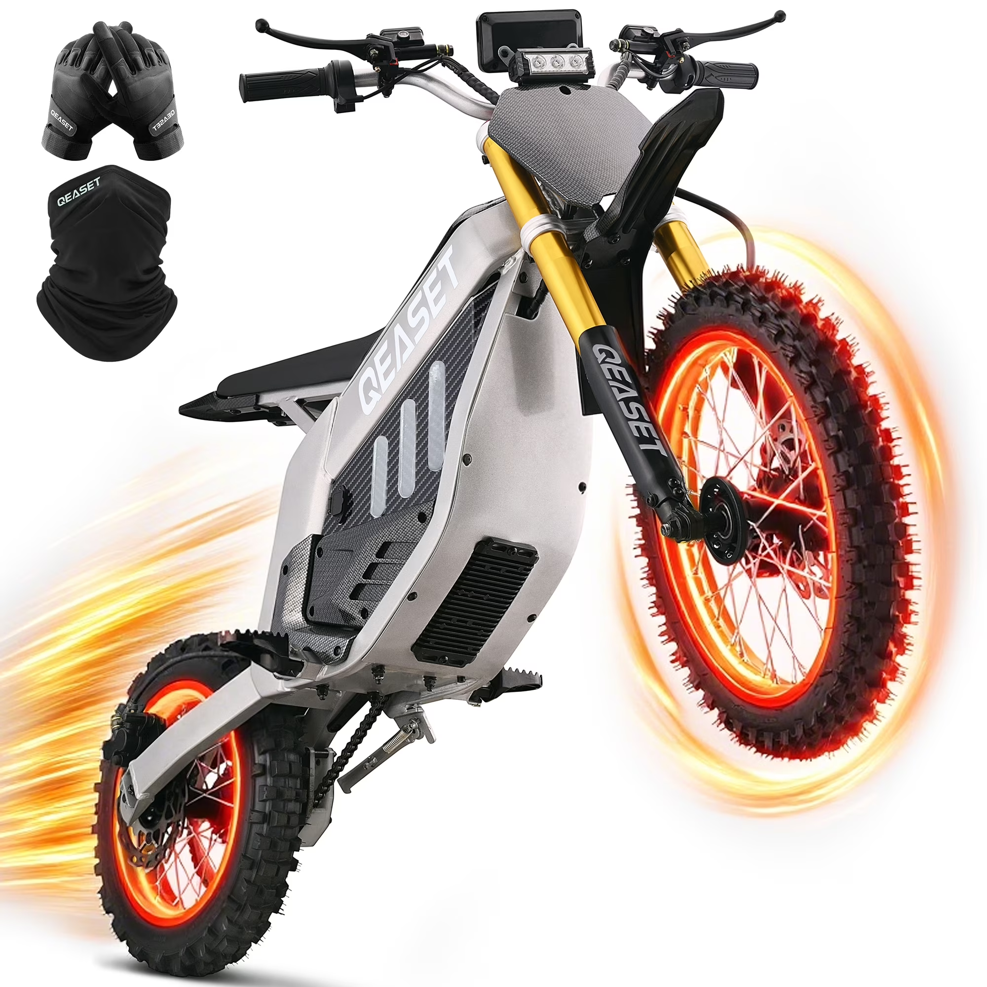 QEASET Electric Dirt Bike, 3000W (Peak Power) 48V, All Terrain Motorized Dirt Bikes, Cool Gifts, White