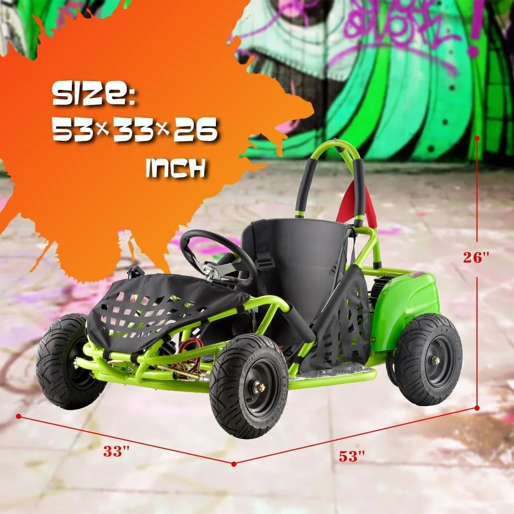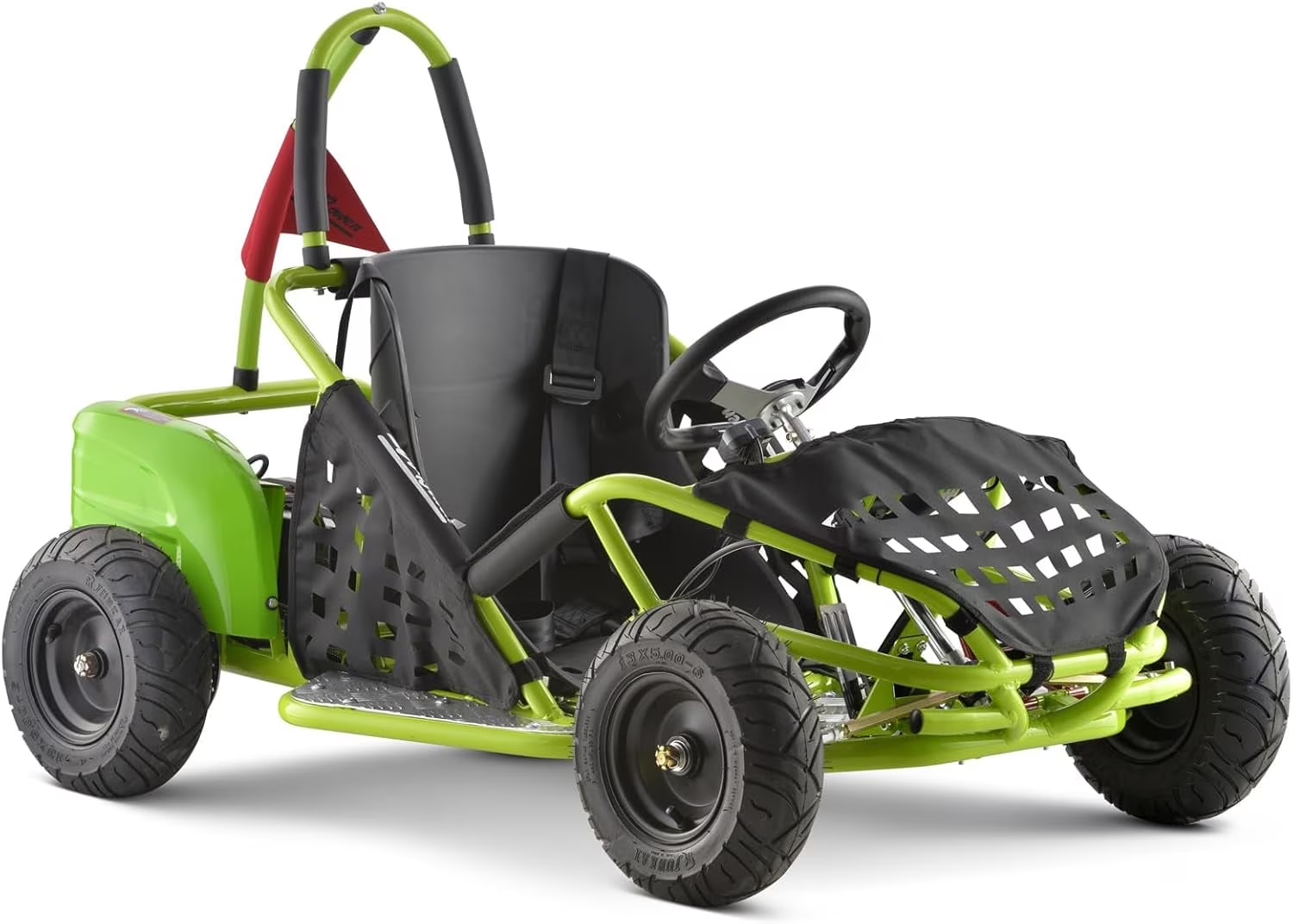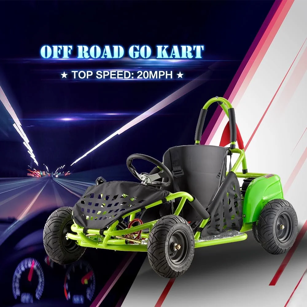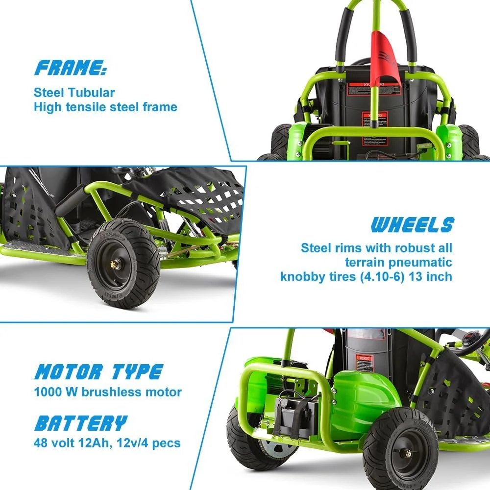 QEASET Electric Go Kart, 48V Powered Ride On Car with Steel Tubular Frame, Seat Belt, 13 inch All-Terrain Tires for Teens(GREEN)