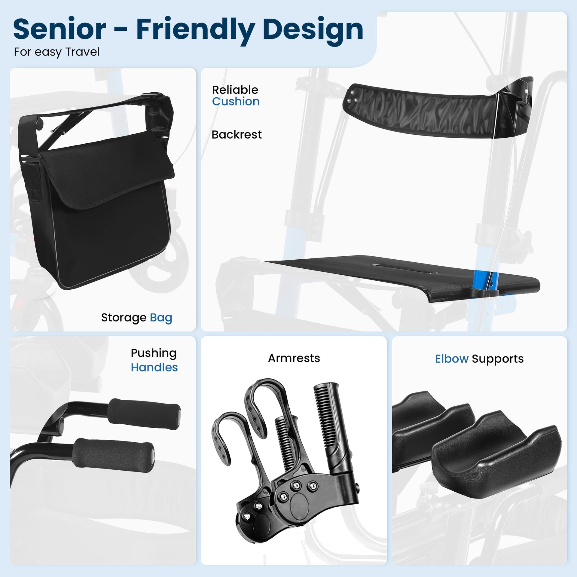QEASET Folding Mobility Walkers, Convertible wheelchair, Blue