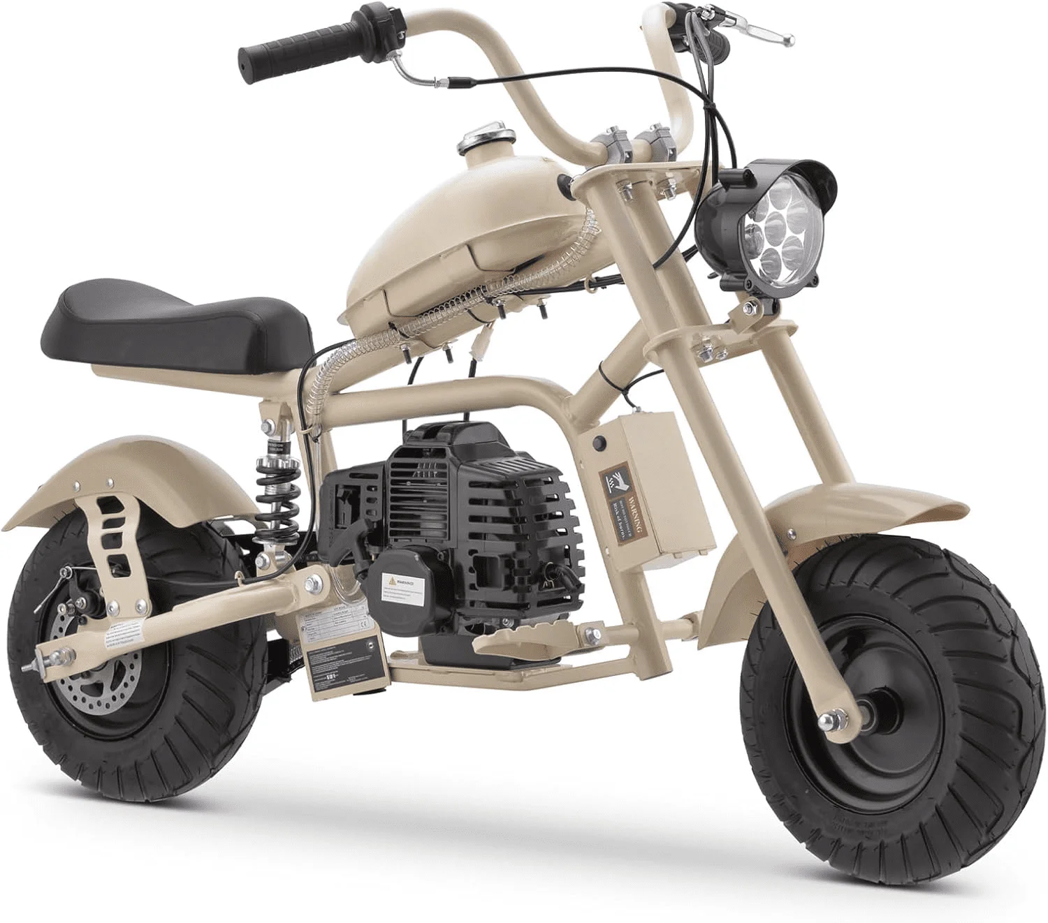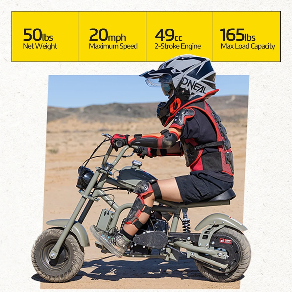 QEASET Gas Mini Chopper Bike, 49.4 CC 2-Stroke Dirt Bike with Big Headlight, Rear Shock Absorber, Metal Frame, Disc Brakes, Max Load 165Lbs, Up to 20Mph, Gary