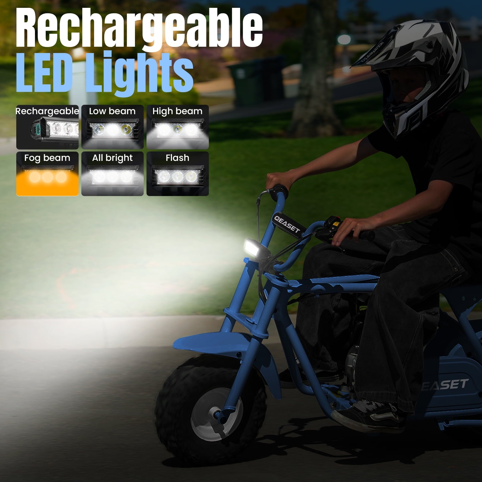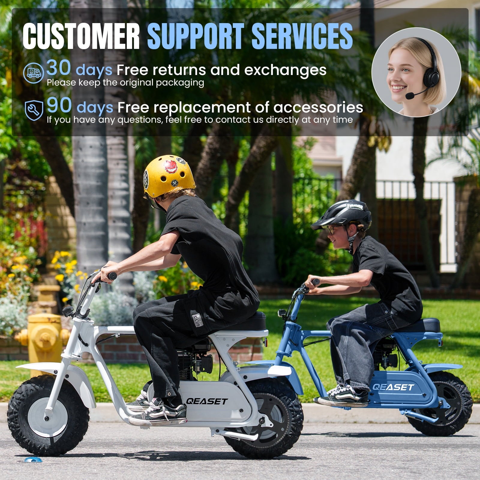 Get off the couch and onto the trail with the QEASET Mini Dirt Bike. Arriving 85 % pre-assembled, most riders are ready to rip in under 20 minutes. The torque-rich 4-stroke engine propels you to 30 km/h (18.6 mph) and powers up 15° hills without hesitation. Aggressive 145/70-6 front & 145/70-5 rear knobby tires wrapped around lightweight alloy rims give you sure-footed grip on dirt, sand, or gravel. A low 24.8-inch seat height and rear disc brake deliver confidence-inspiring control for new and seasoned riders alike. Whether you’re carving backyard tracks, patrolling the farm, or camping off-grid, QEASET is the affordable, low-maintenance ticket to big-bike thrills in a compact package.