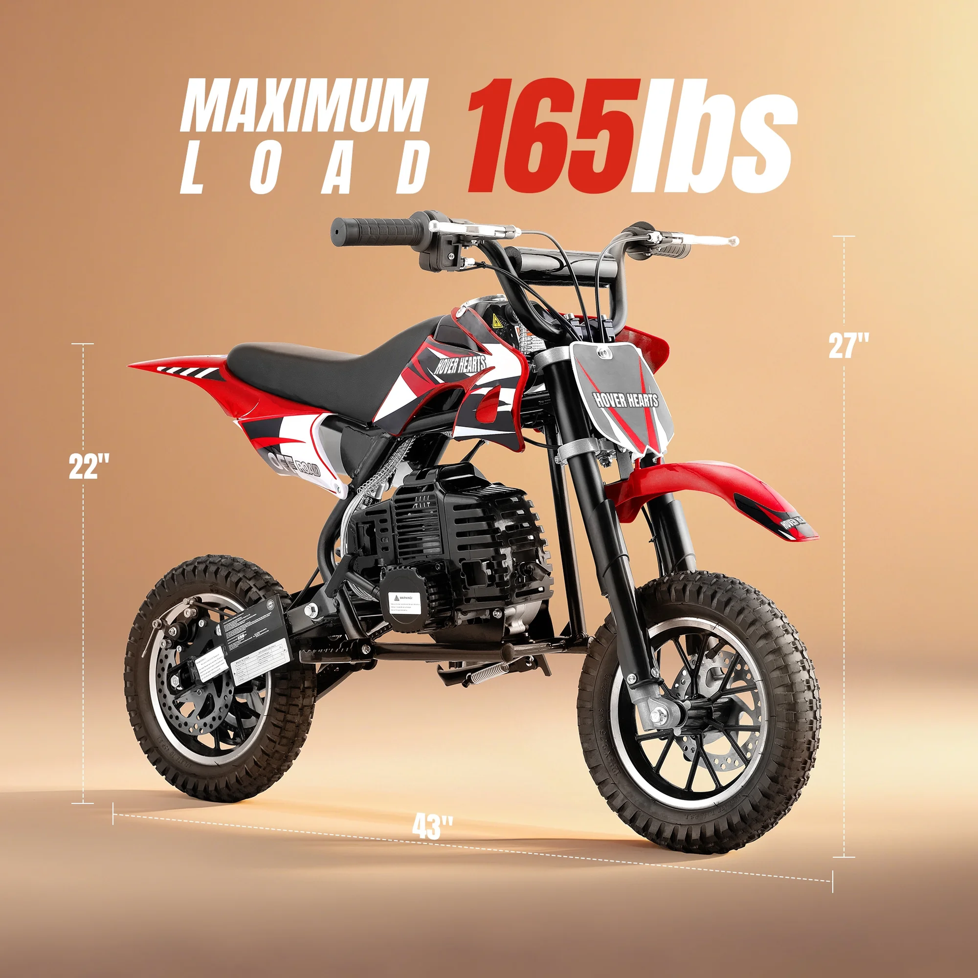 QEASET  Mini gas dirt bicycles, 49 CC 2-Stroke Gas Bik with Off-Rode Tire, Suspensions, Disc Brakes, Max Load 160Lbs, Up to 20Mph, Red