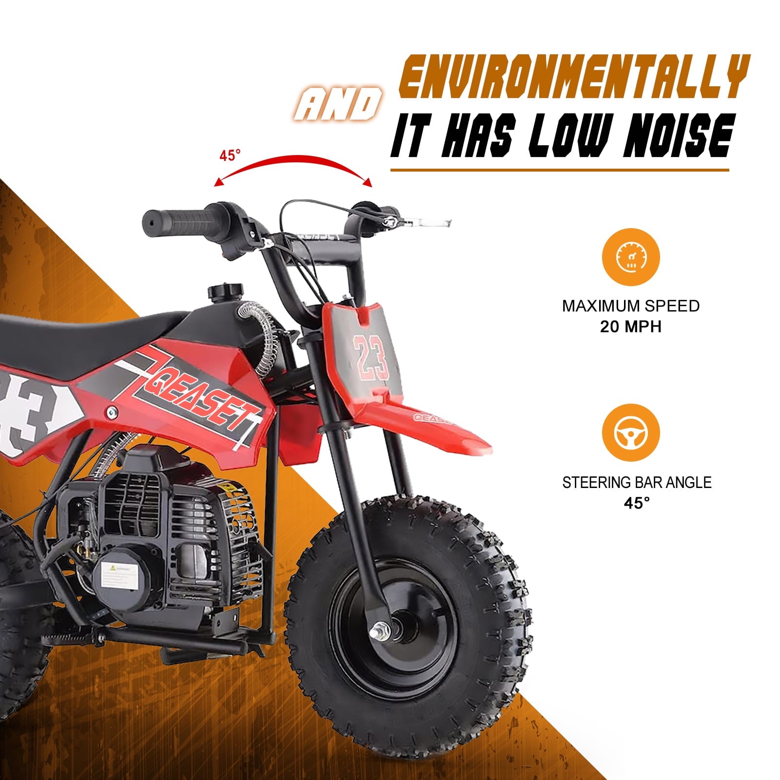 QEASET Mini Kid Dirt Bike,49 CC 2-Stroke Gas Bike with Off-Rode Tire,up to 20Mph, EPA Approved(Red)
