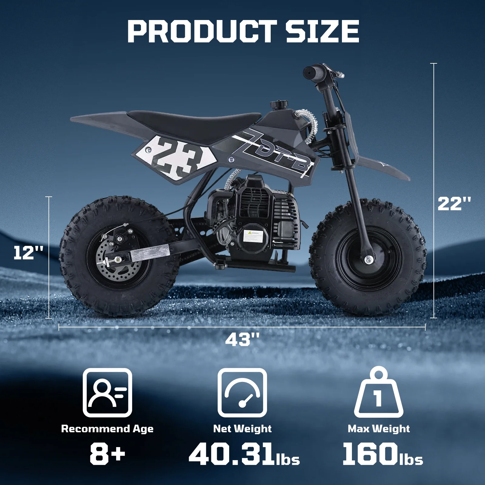 Dirt bike Size: 38"L x 22"W x 27"H