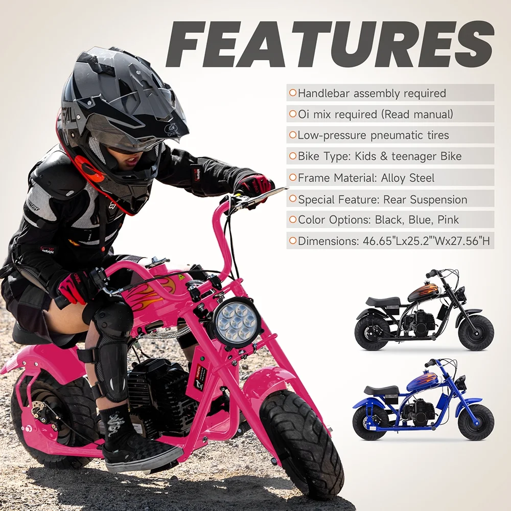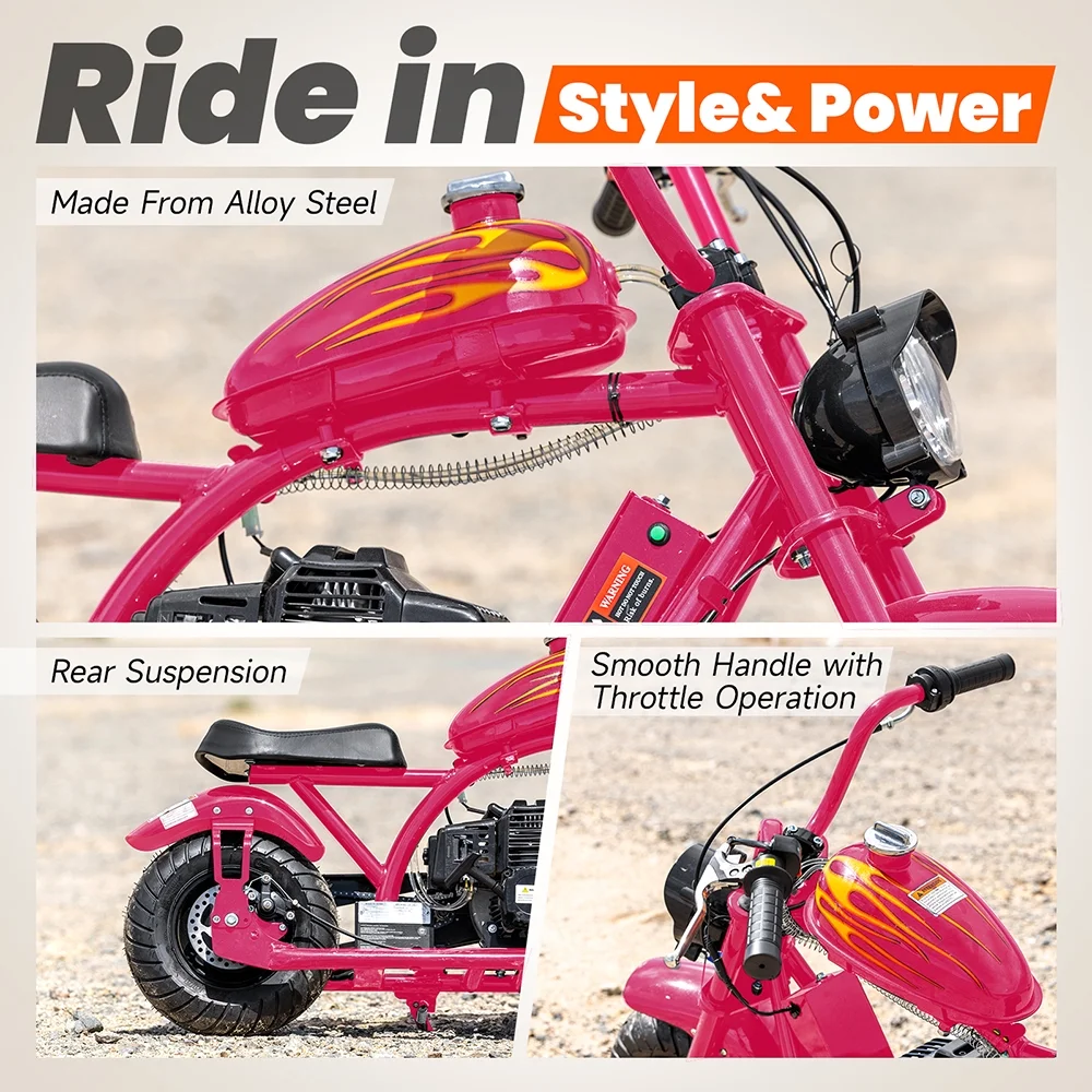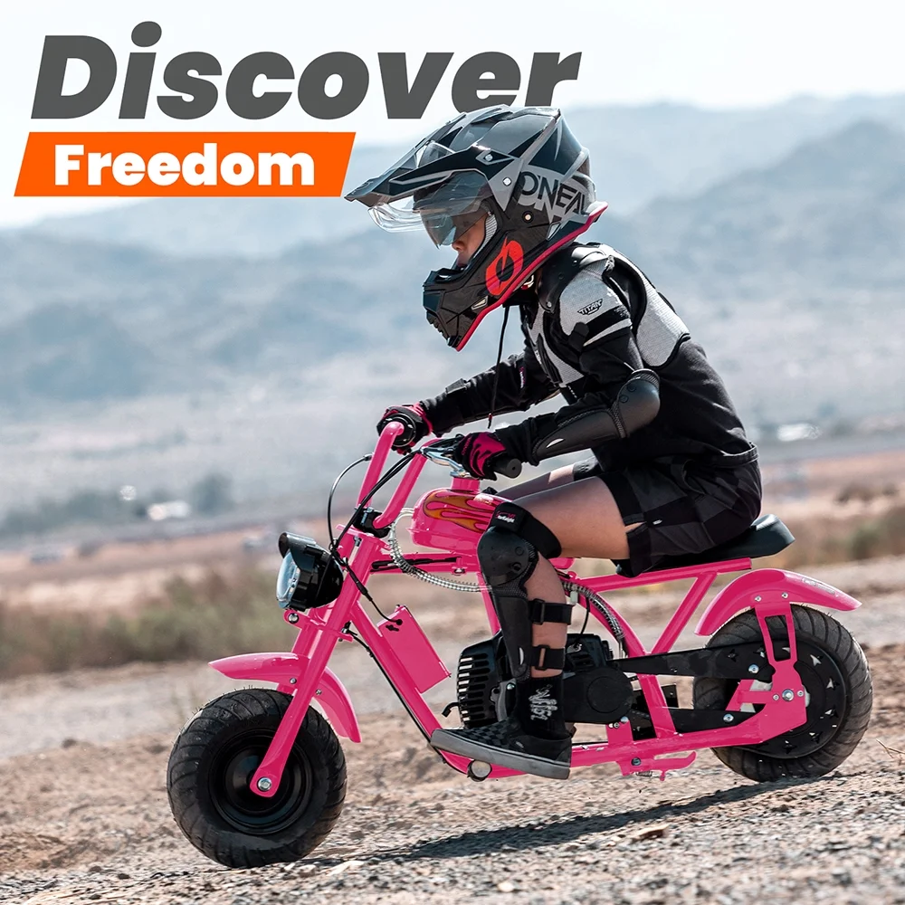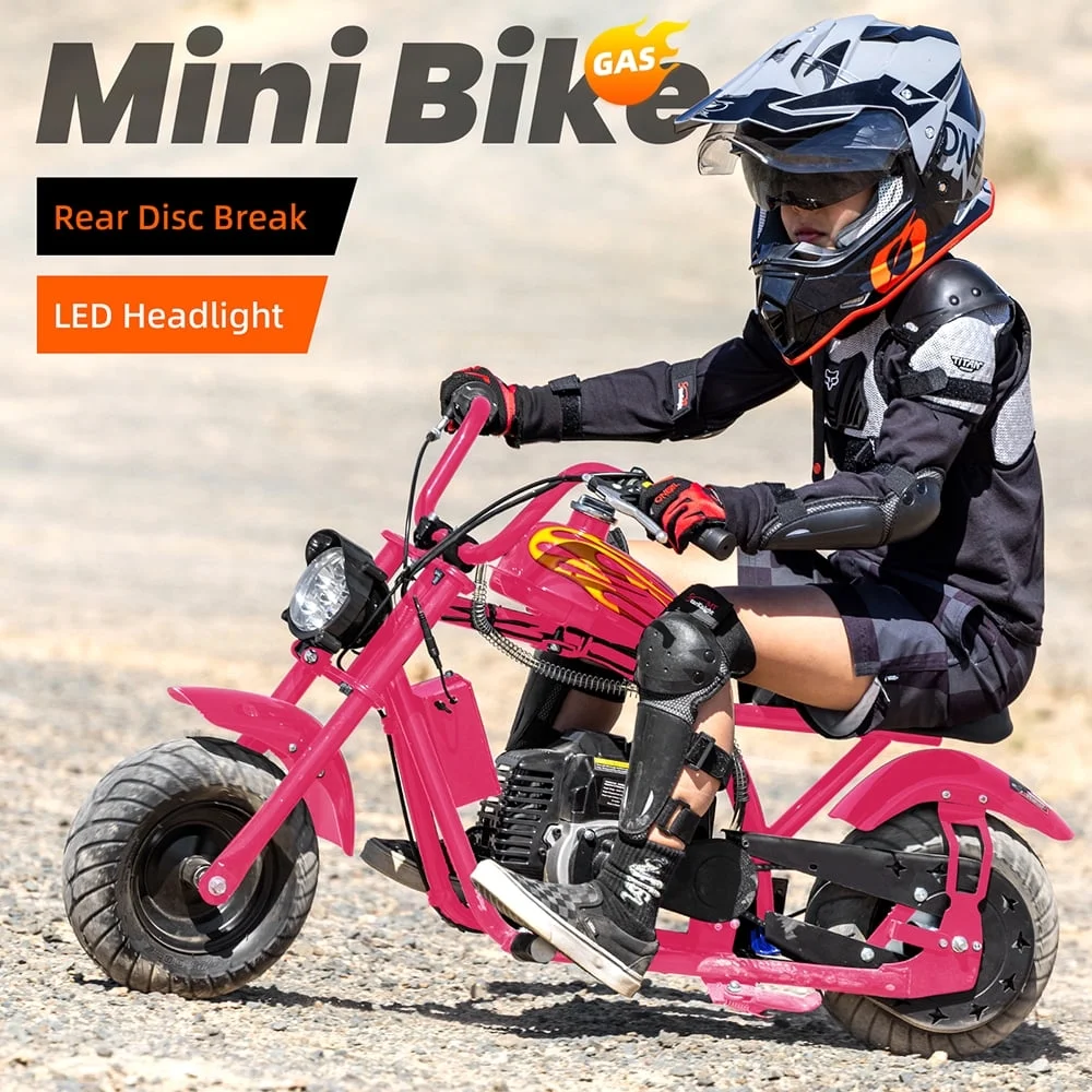 QEASET Mini Off-Road Dirt Bike, 49 CC 2-Stroke Gas Chopper Bike with Off-Road Tire, Disc Brakes, Max Load 160Lbs, Max Speed 18Mph, Pink