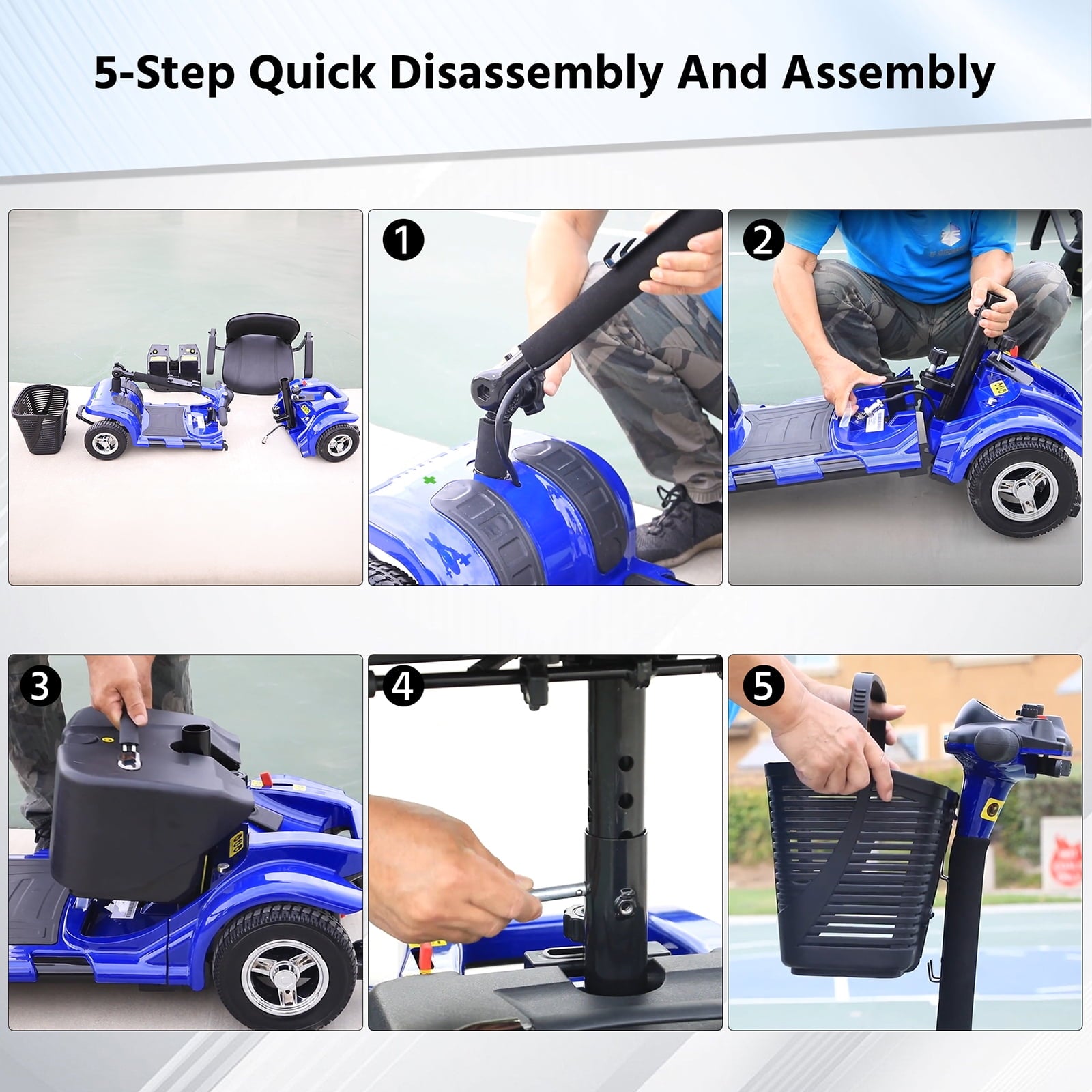 • 【Quick-Fold Design,Effortless Transport】Our foldable mobility scooter features a valve seat that can adjust the angle and basket.The electric wheelchair can be quickly disassembled in a few steps without tools and is easy to assemble.After disassembly,it fits in the back seat or trunk of most vehicles,making it highly portable—perfect for travelers,adults,and seniors who need a convenient mobility scooter.