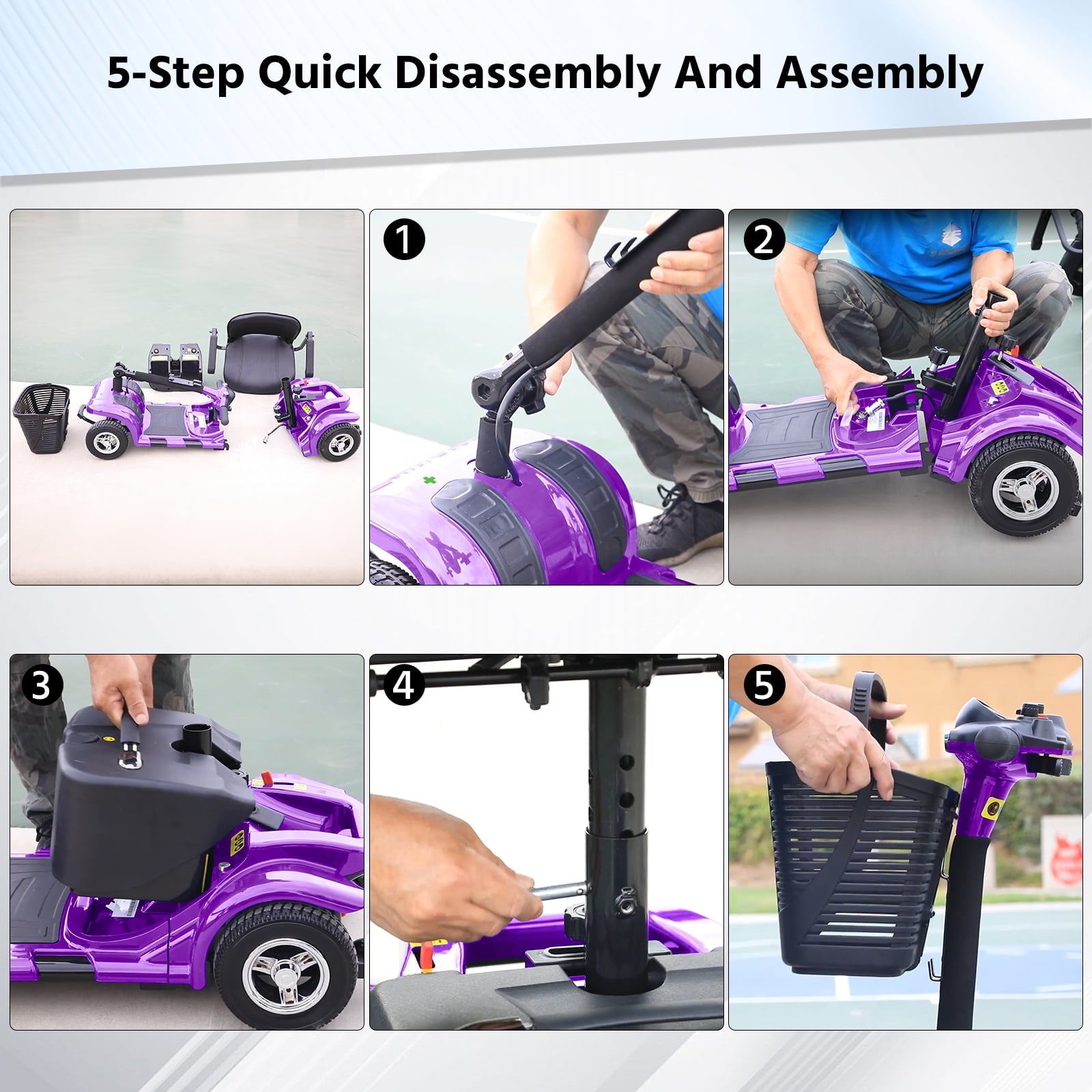 Upgrade 4 Wheels Mobility Scooters for Seniors & Adult,Foldable Electric Wheelchair for Adult,All Terrain Motorized Scooters with 300 LBS,Long Travel Range,Basket,Rotating Seat,Purple